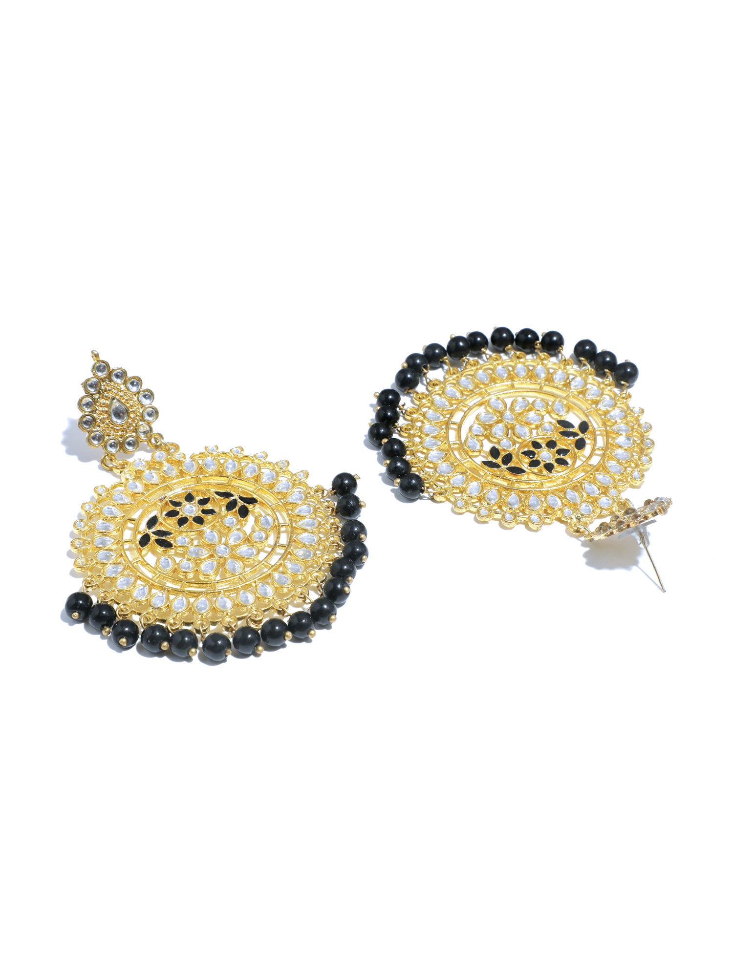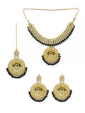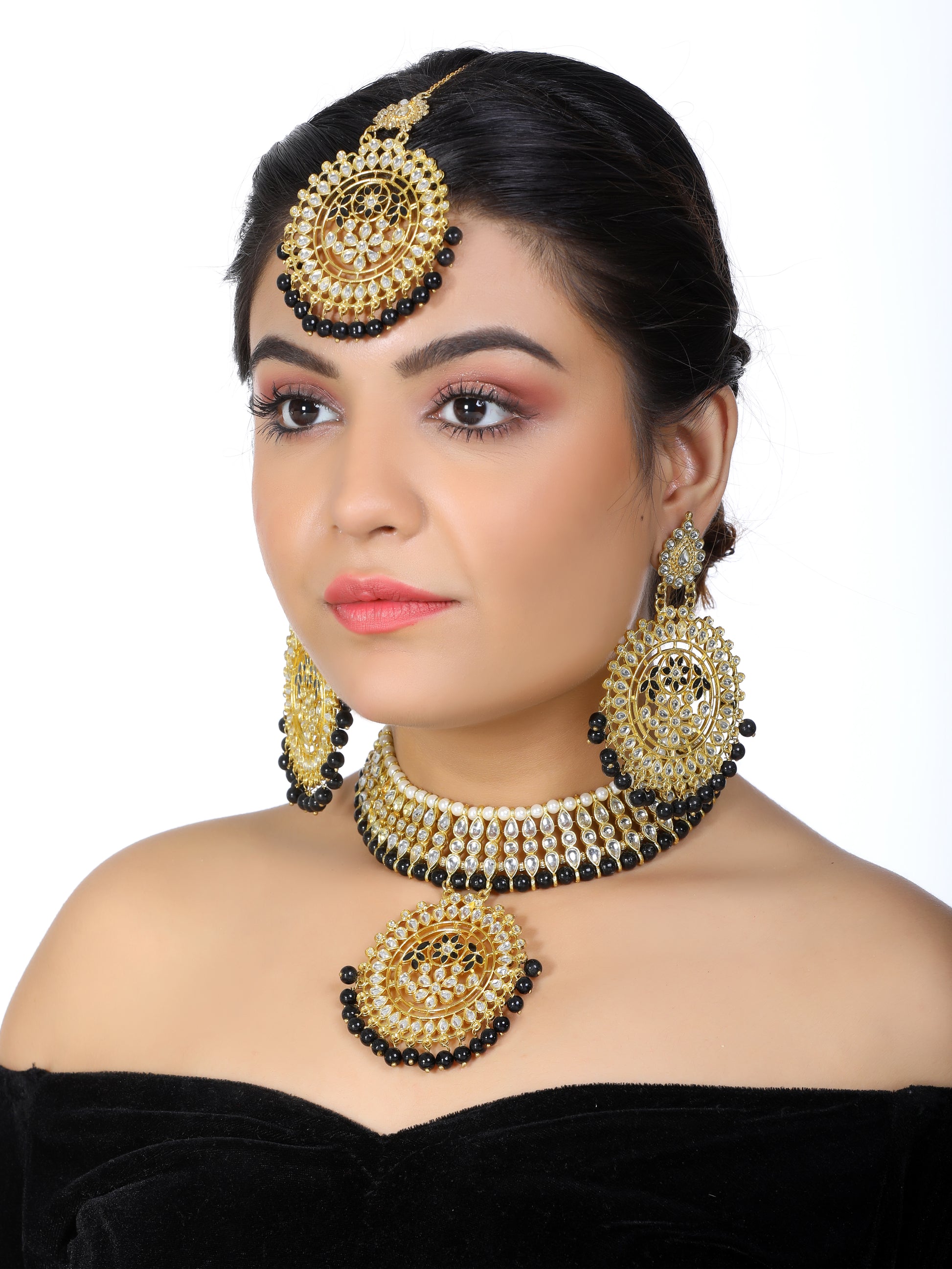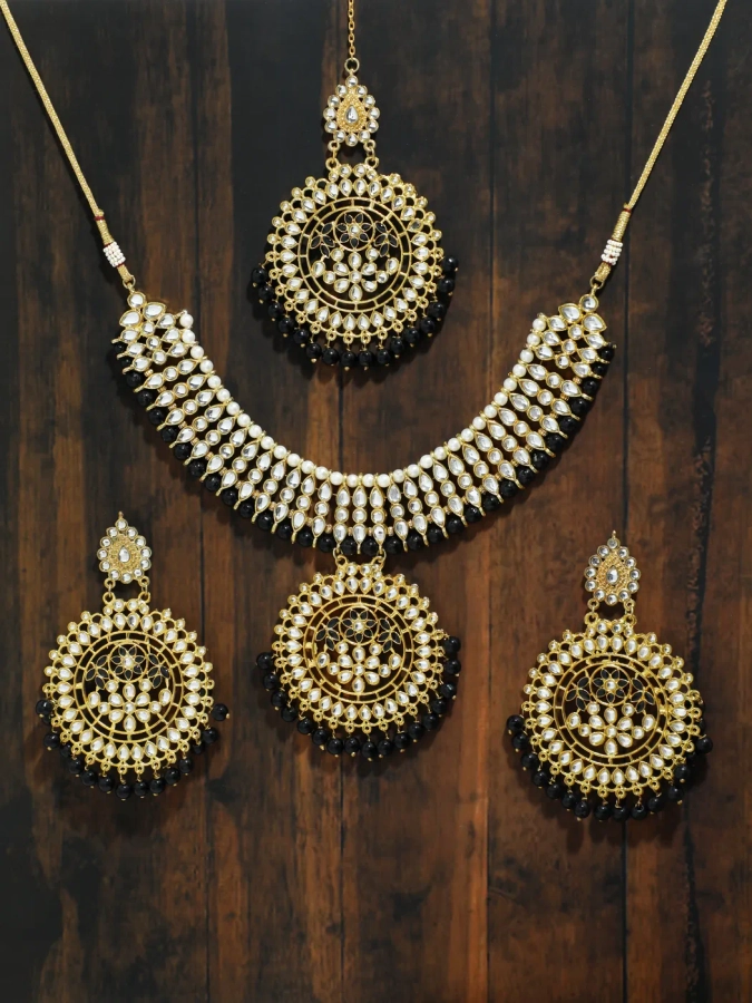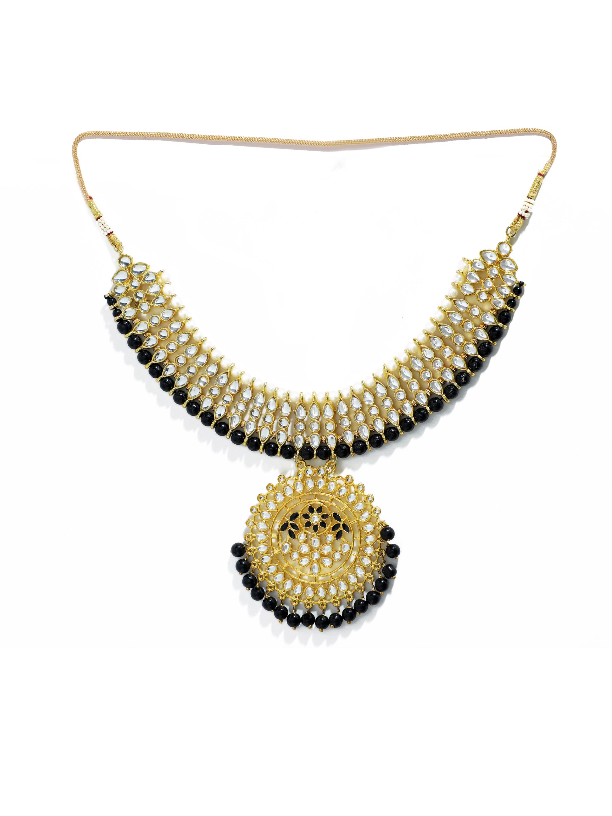 - Kundan Gold and Black Necklace Set. Pair it with your Indian attire and stand out in every occasion. Made with Internationally approved skin friendly material.