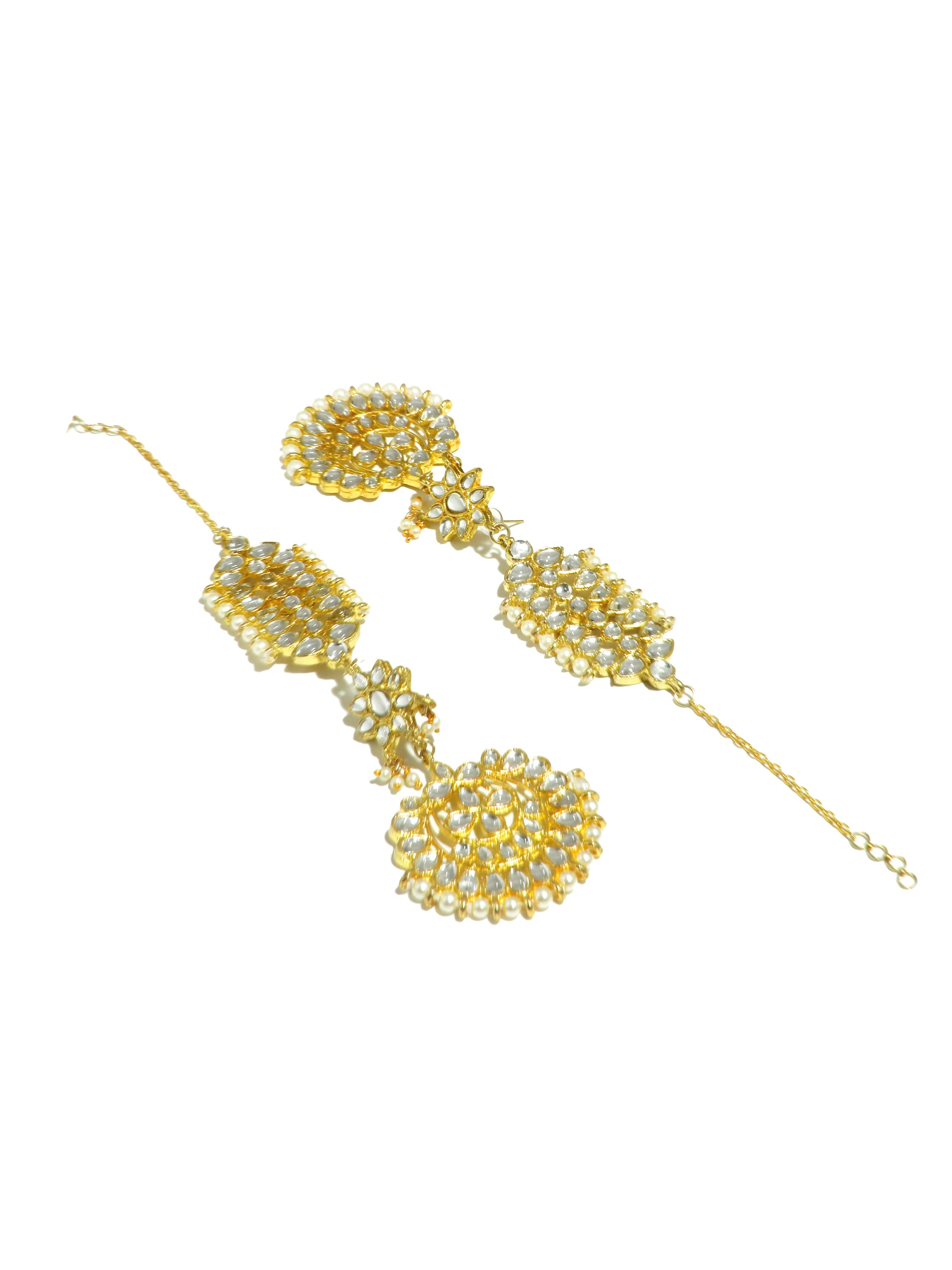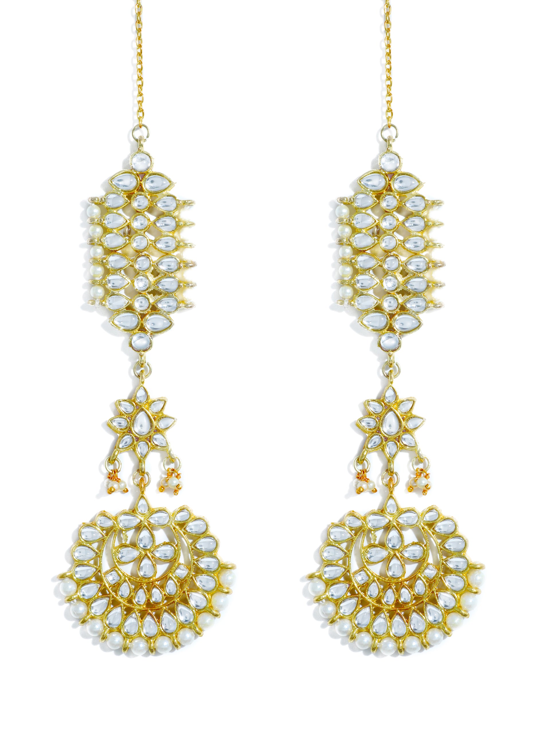 - Faux Kundan Gold Kaanchain Earrings Set. This set of earrings can be best paired with Indian Attire. Made with Internationally approved skin friendly material