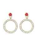 Kundan Hoop Earrings with Fuchsia Stone