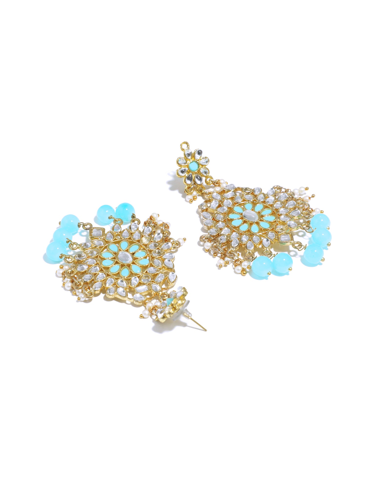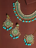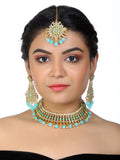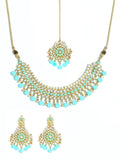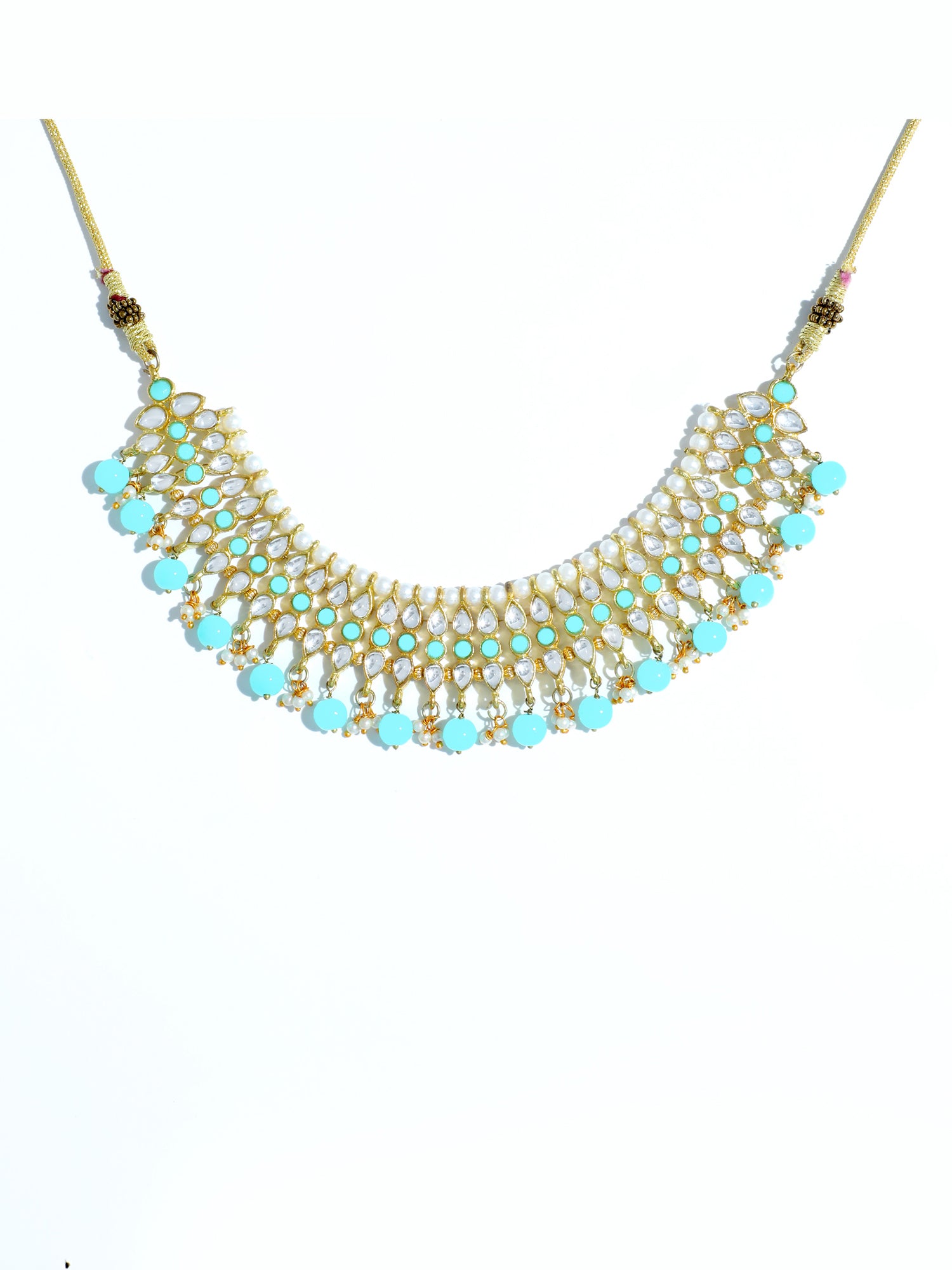 - Gold and Silver Tone Faux Kundan Mint Blue Necklace Set. Best when Paired with any Indian Attire. Made with Internationally approved skin friendly material