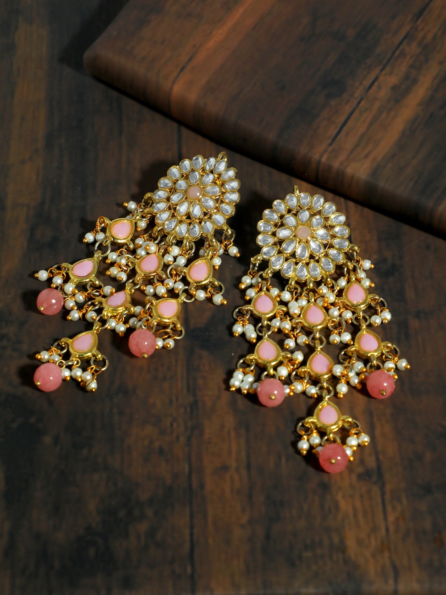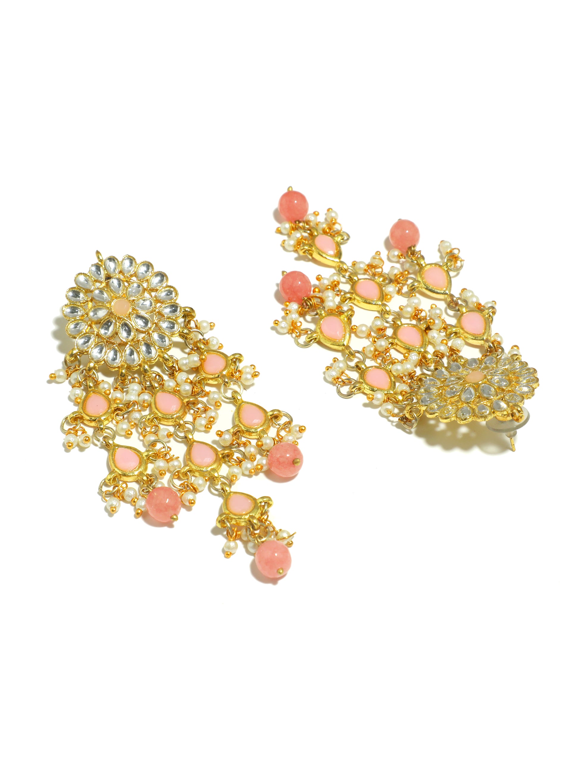 - Gold Tone Faux Kundan Peach Tassel Earrings. This set of earrings can be best paired with Indian Attire. Made with Internationally approved skin-friendly material