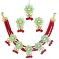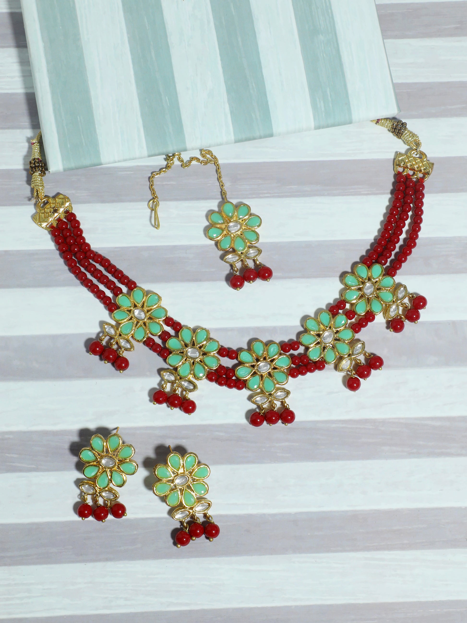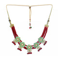 Kundan Red and Mint Green Beaded Choker Necklace Set