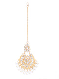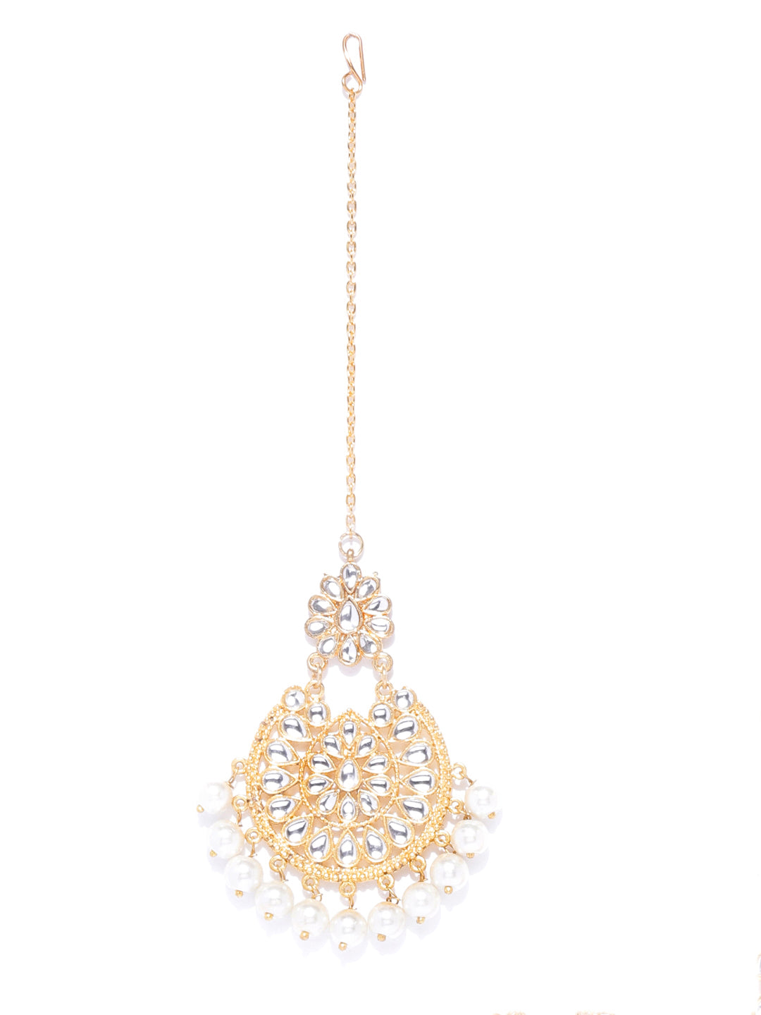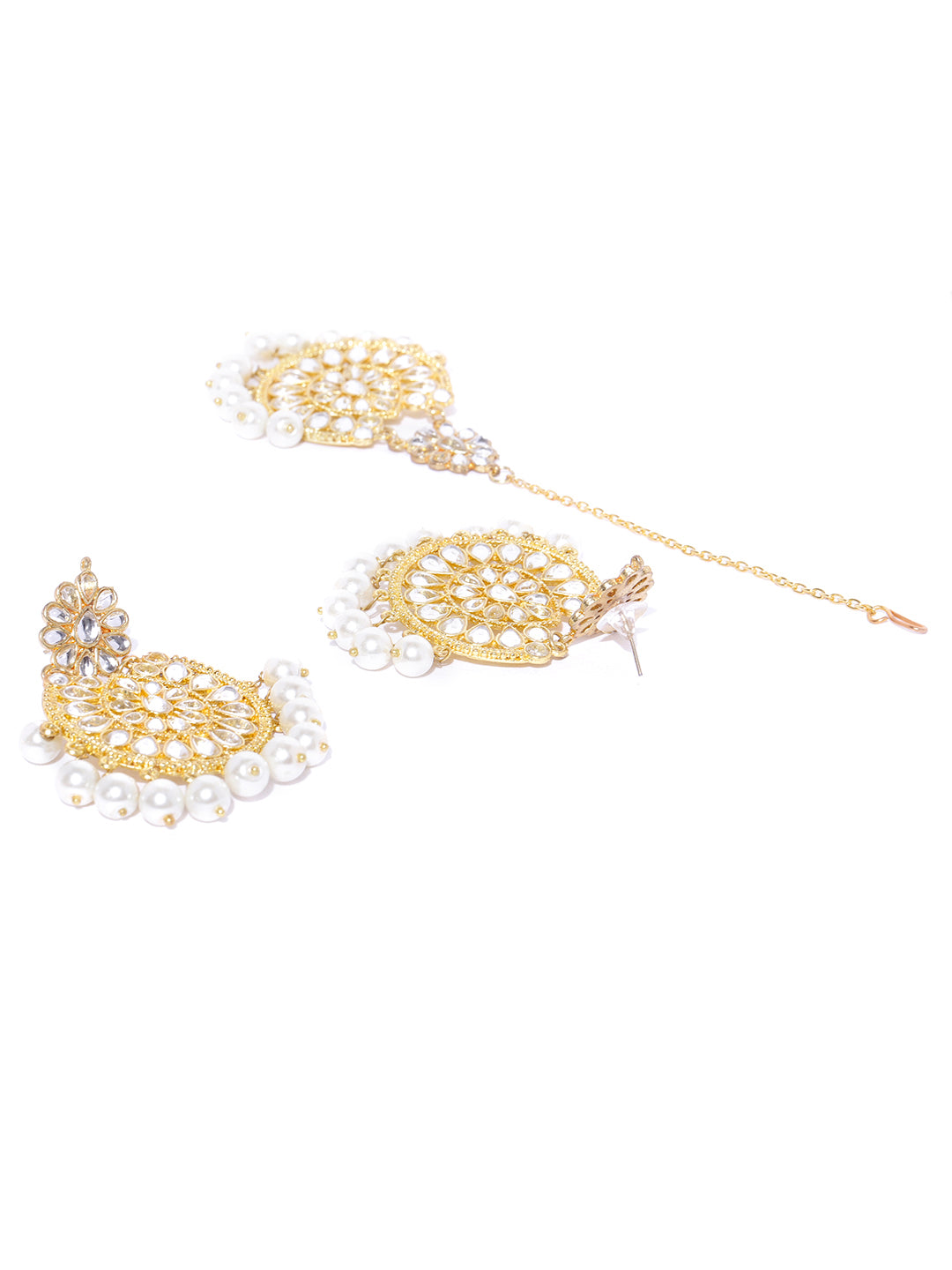 - Kundan earrings with Chain and White Beads. Made with Internationally approved skin friendly materials
