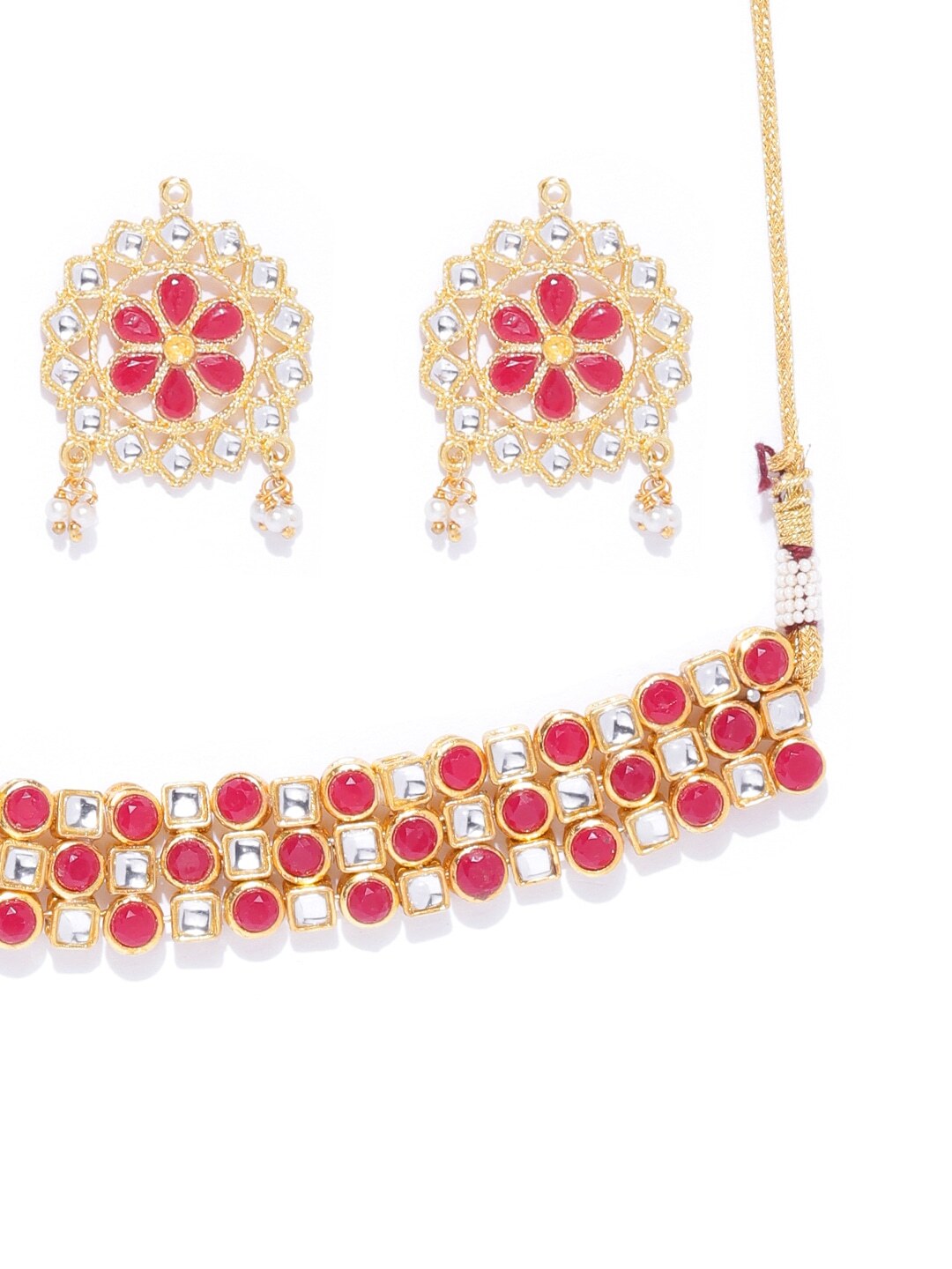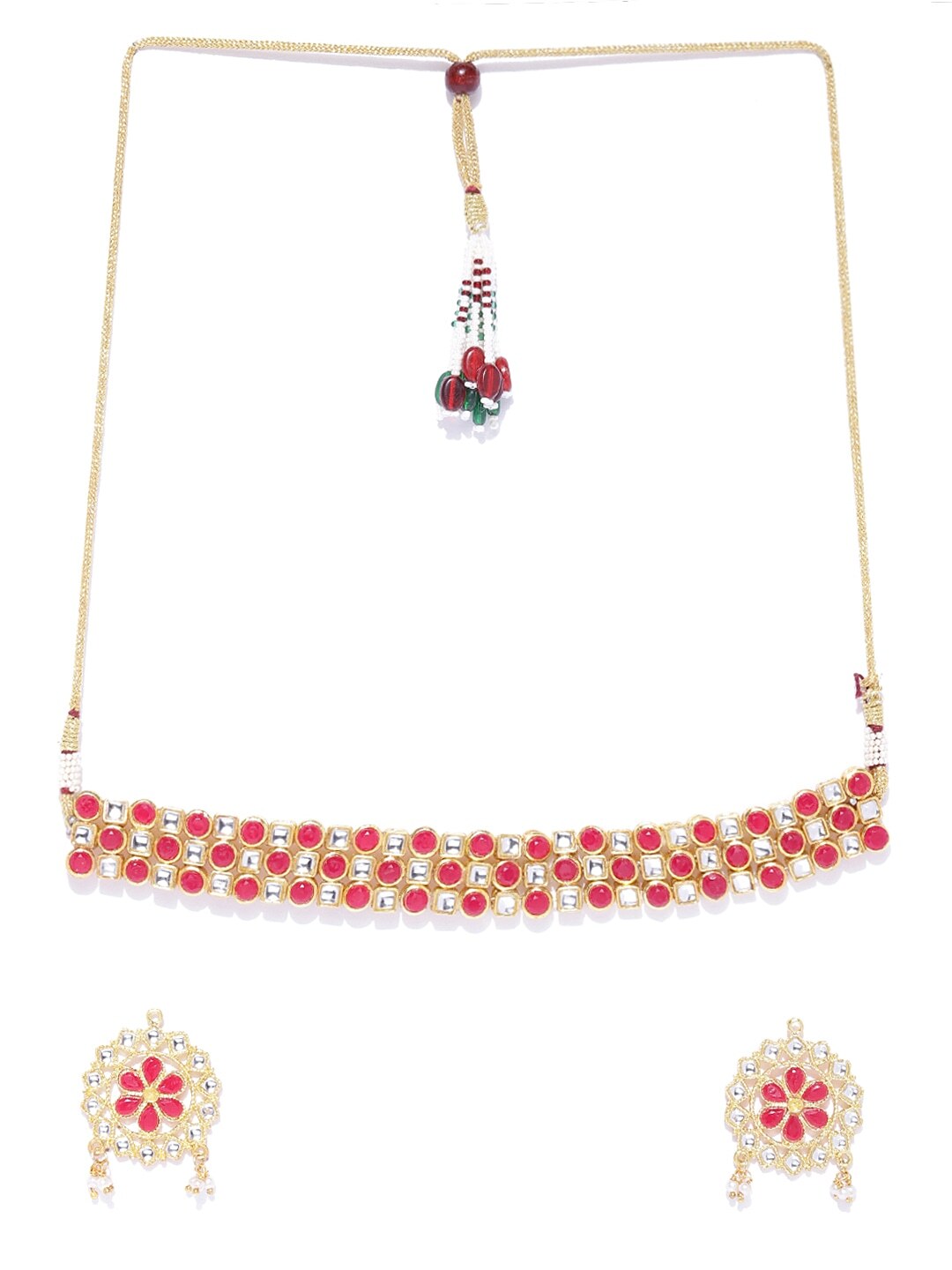 - Kunuz Kundan Red Stone Necklace with Earrings and Maangtikka