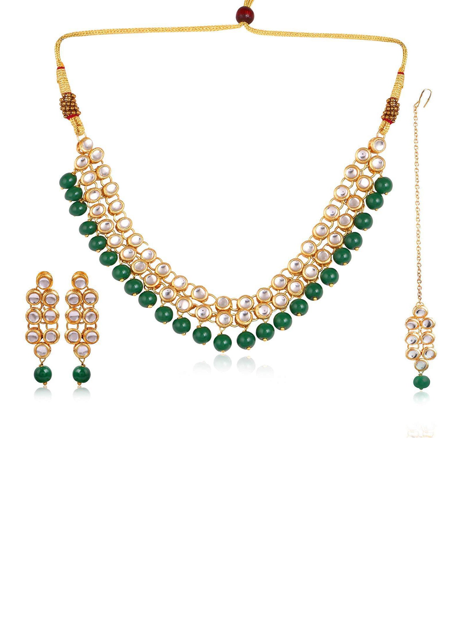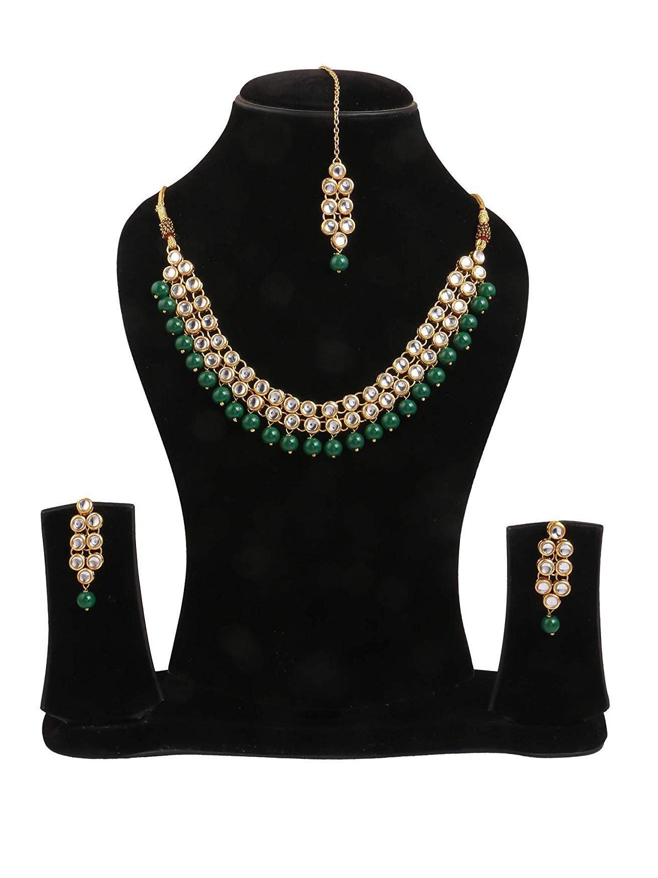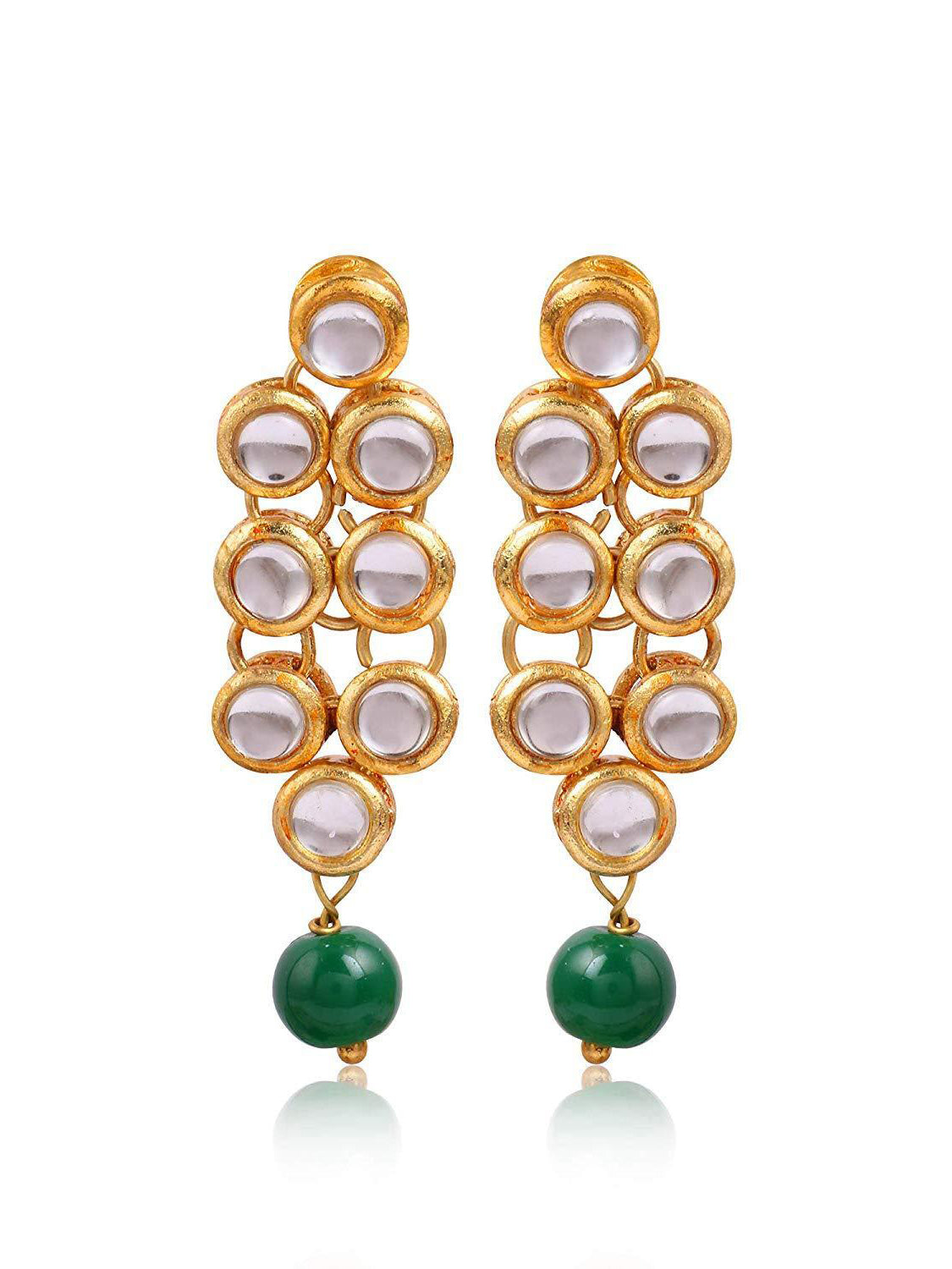 - Kundan earrings with Chaind and Green Beads. Made with Internationally approved skin friendly materials
