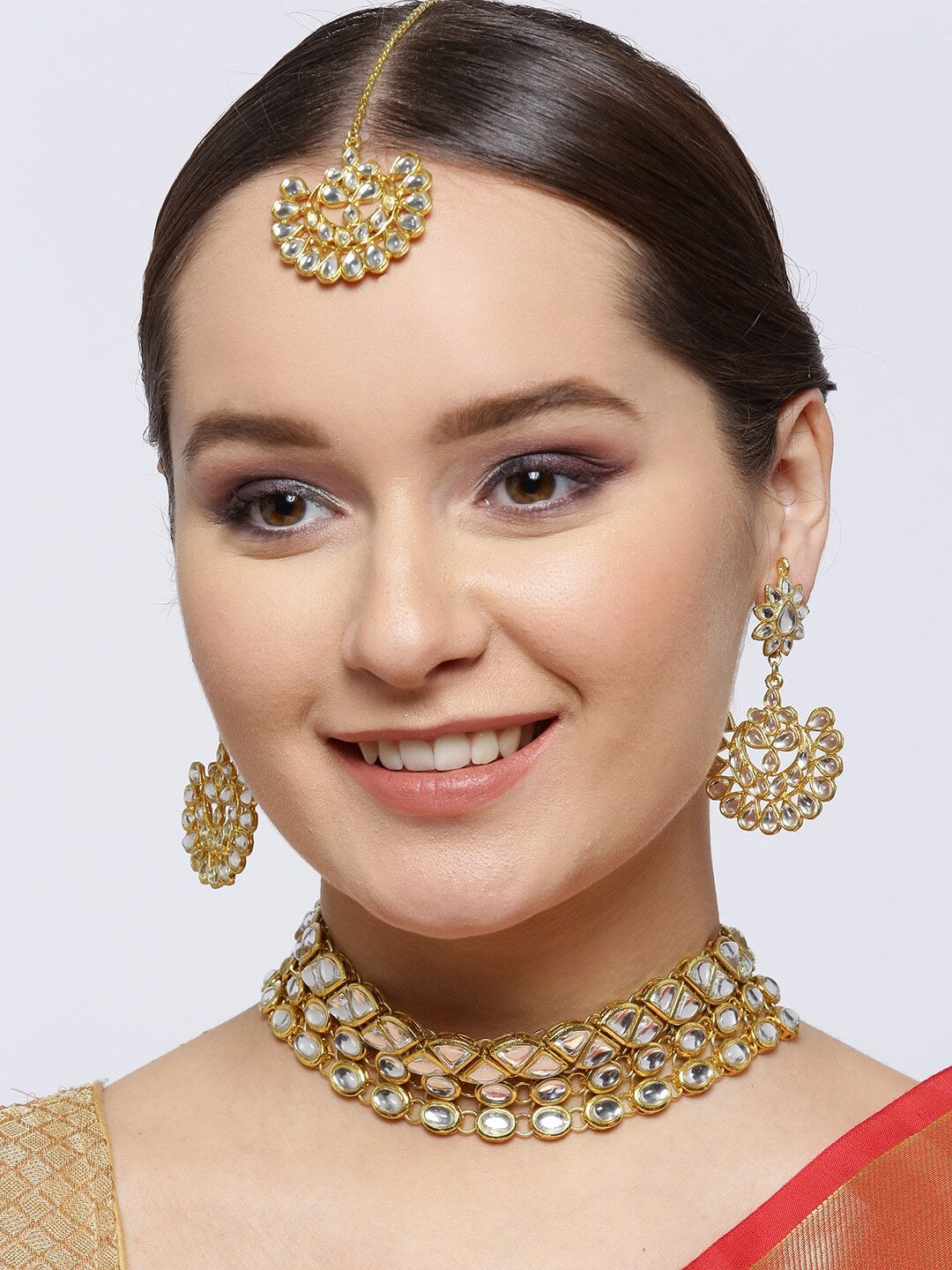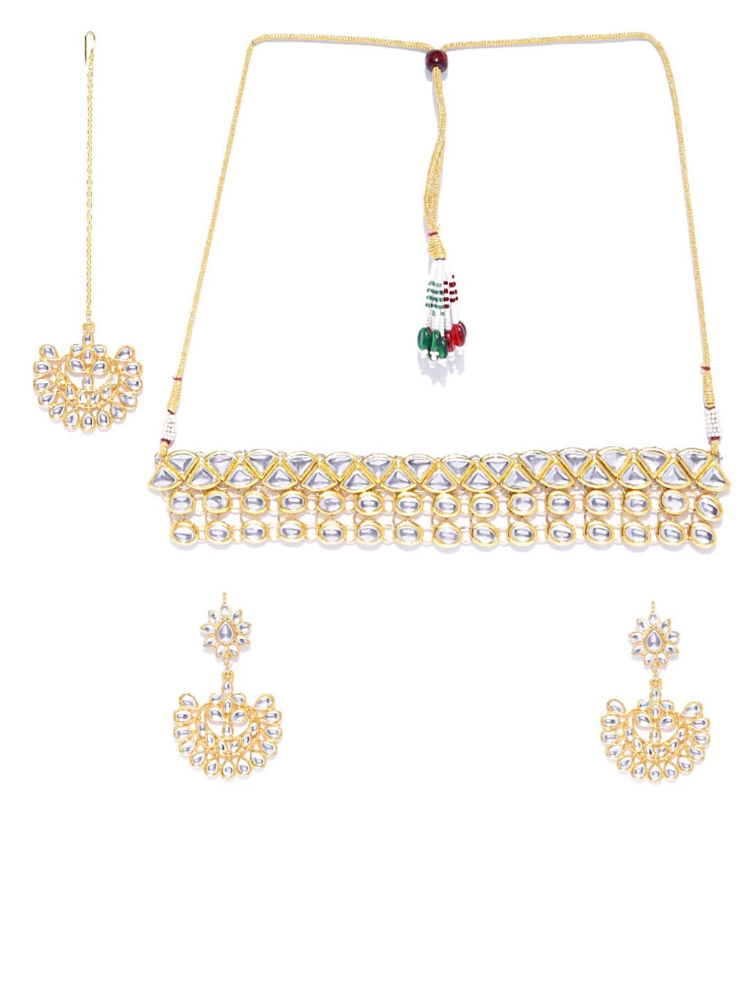 - Kunuz Goldplated Traditional Kundan Choker Set with Earrings and Maangtikka. Made with Internationally approved skin-friendly materials