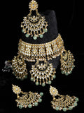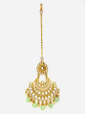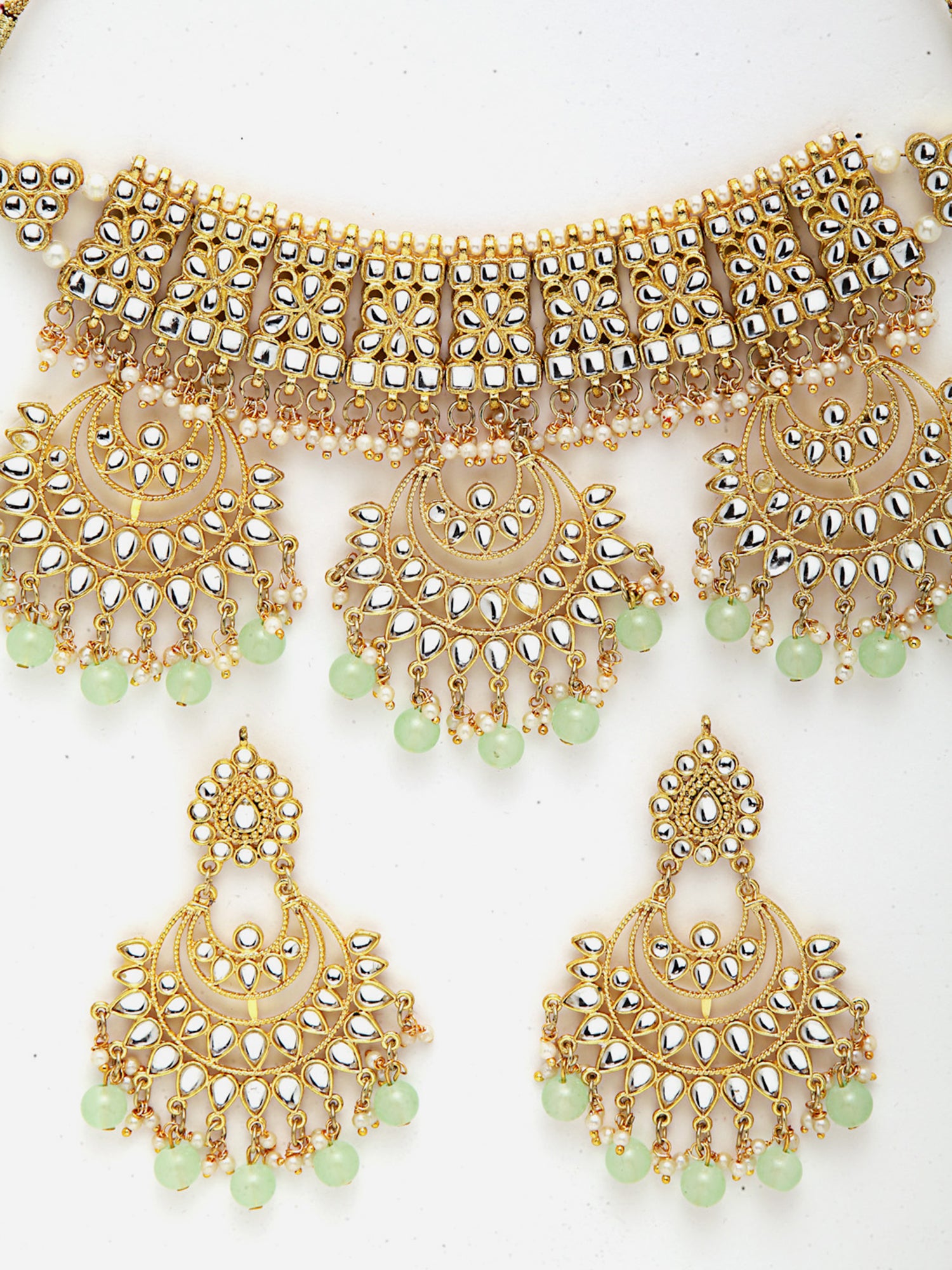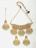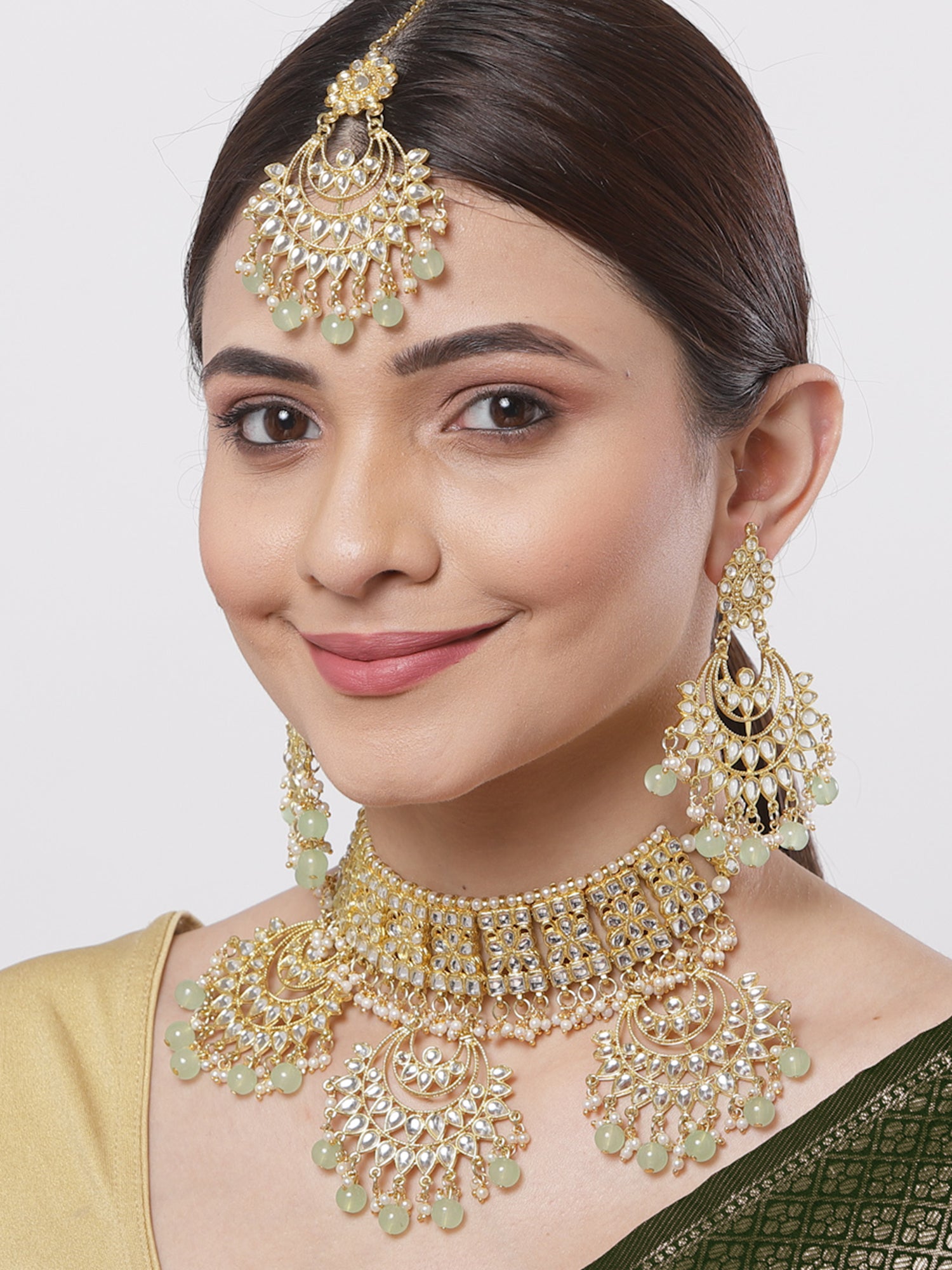 Light Green Beads Gold-Toned Kundan Studded Bridal Choker Necklace Set
