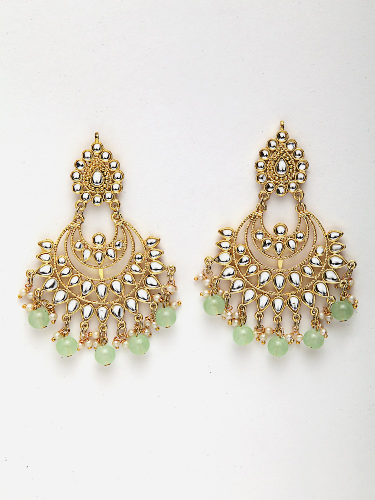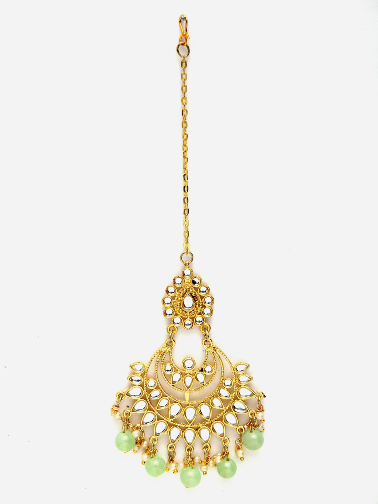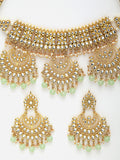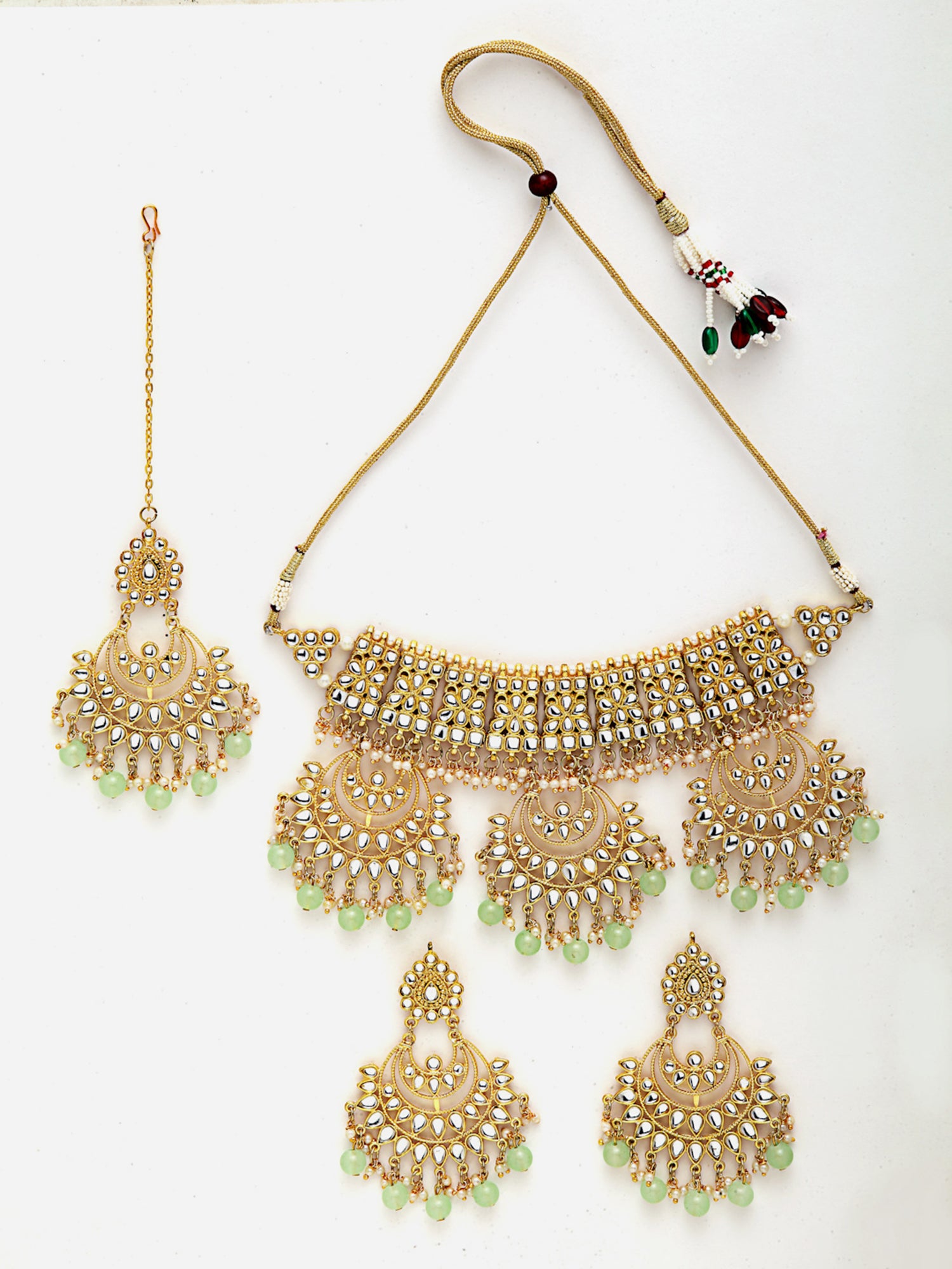 - Light Green Beads Gold-Toned Kundan Studded Bridal Choker Necklace Set. Best when paired with Indian or Indo Western Attire. Made with Internationally approved skin-friendly material, this set is a must-have for your collection.