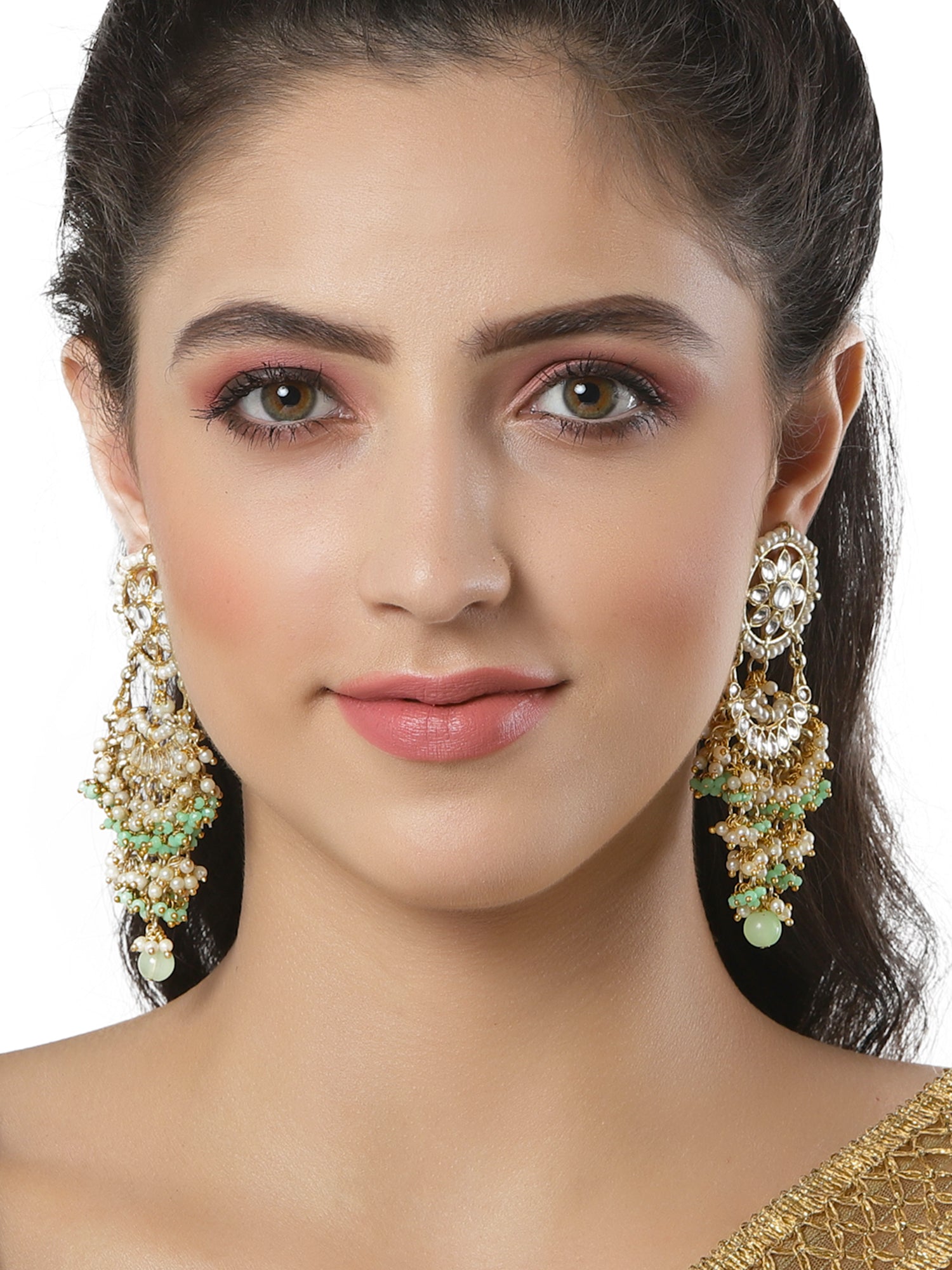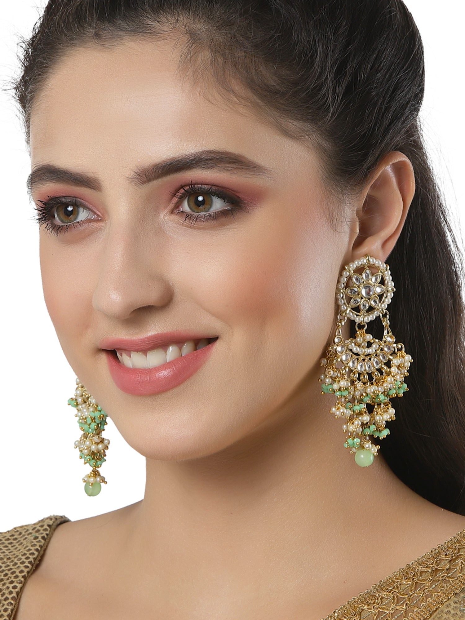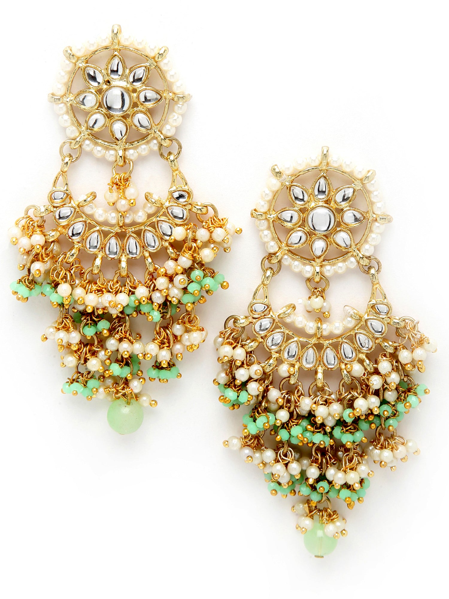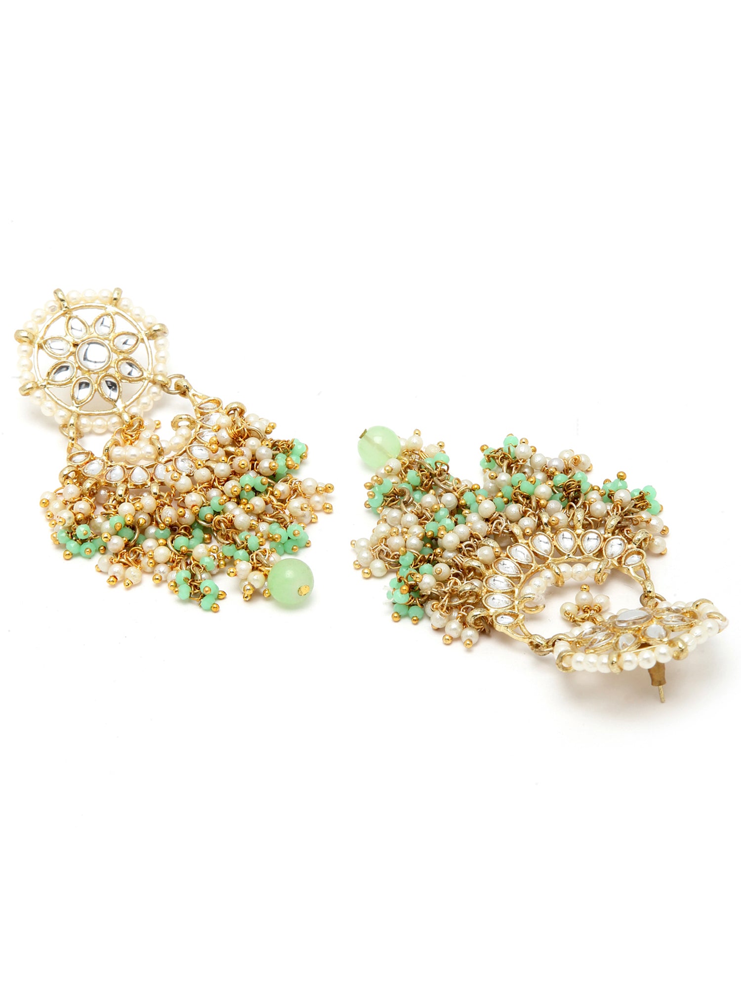 Light Green Crystal and Pearl Kundan Dangler Earrings for Women