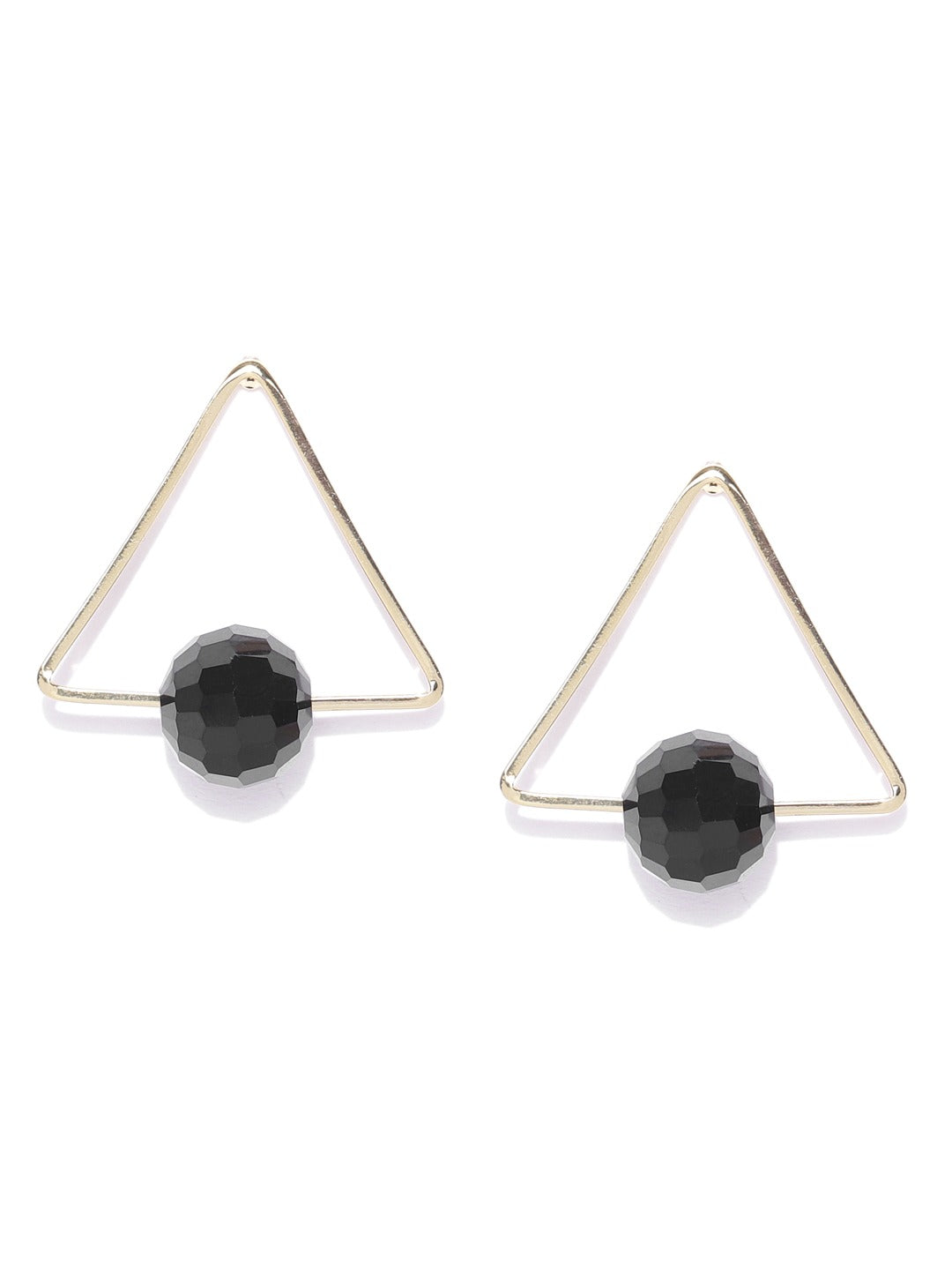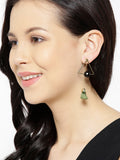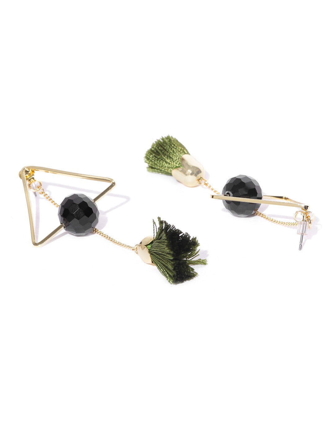 - Metal Gold Black Crystal Geometrical with Green Thread Drop Light Weight Earrings