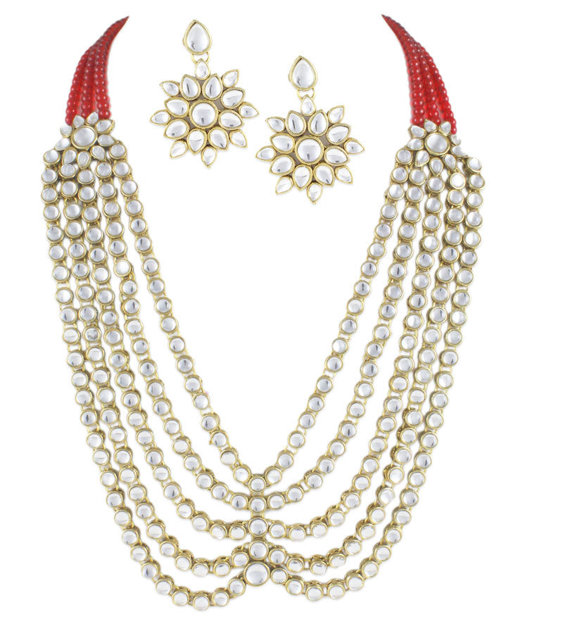 Karatcart Gold-Plated Handcrafted Kundan Rani Haar Necklace Set