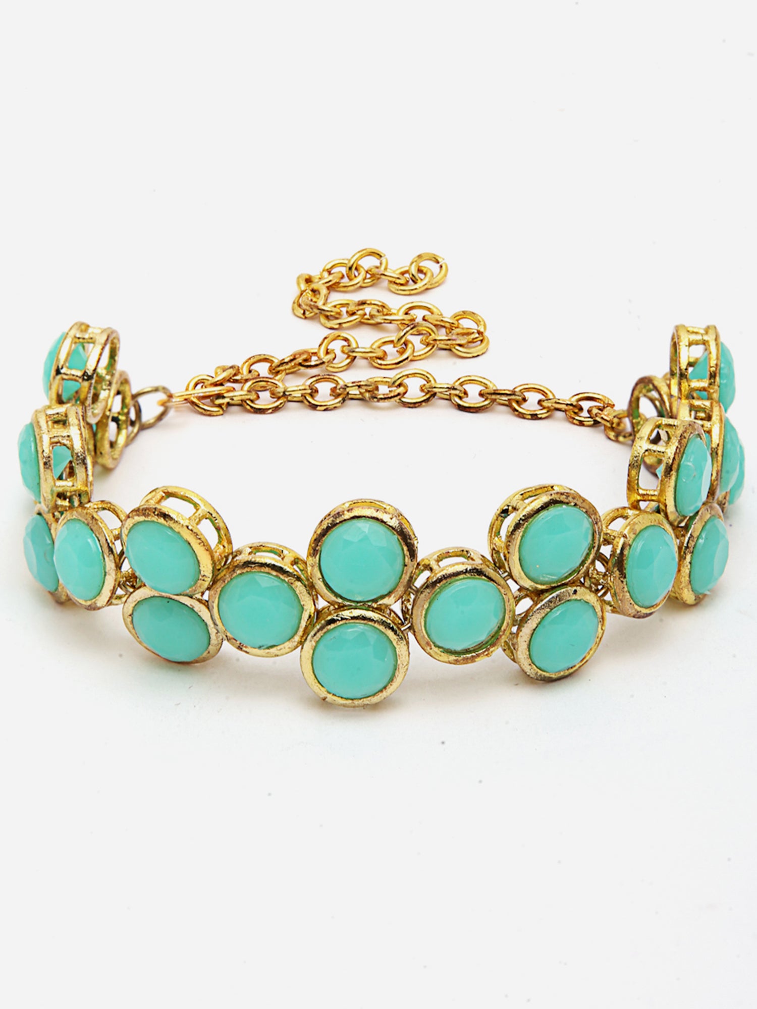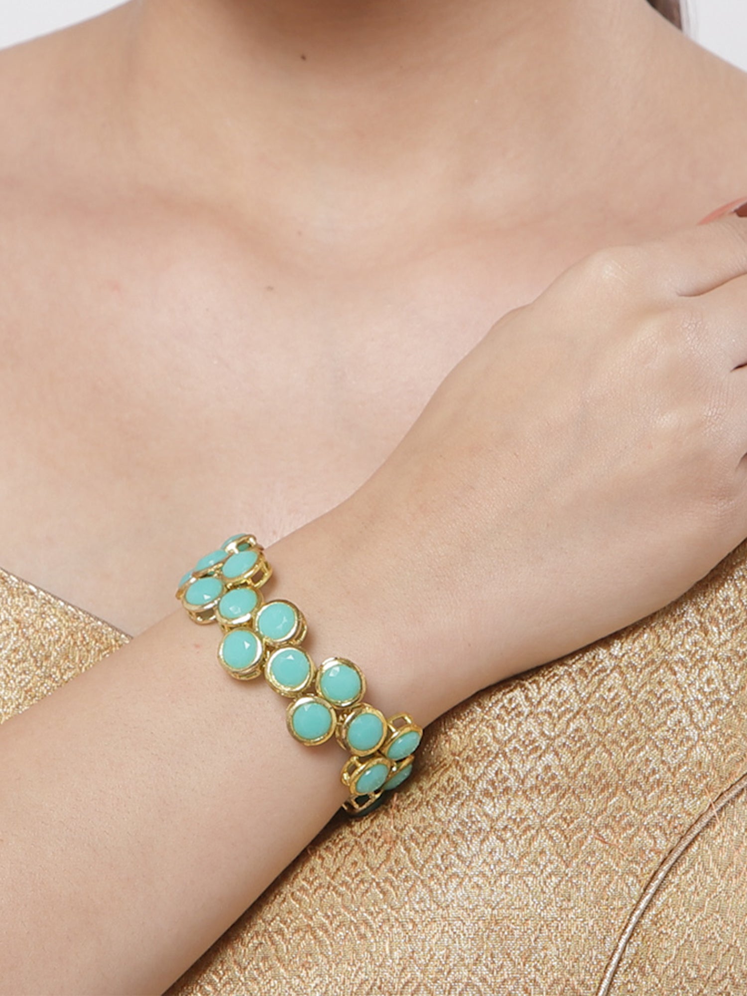 - Mint Blue Kundan Gold-Plated Embellished Wraparound Bracelet for Women's. It's Five Layer Micro Gold Plated and Embellished with Kundan for High Durability. Intricate high polish creates glamorous reflections and adds a luxurious look. Perfect for Weddings, Festivals, Traditional Occasions. Best when paired with any Indian outfit.