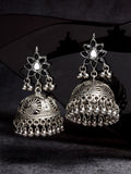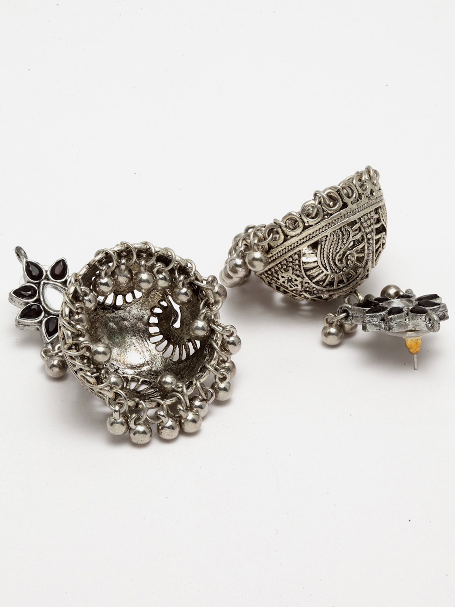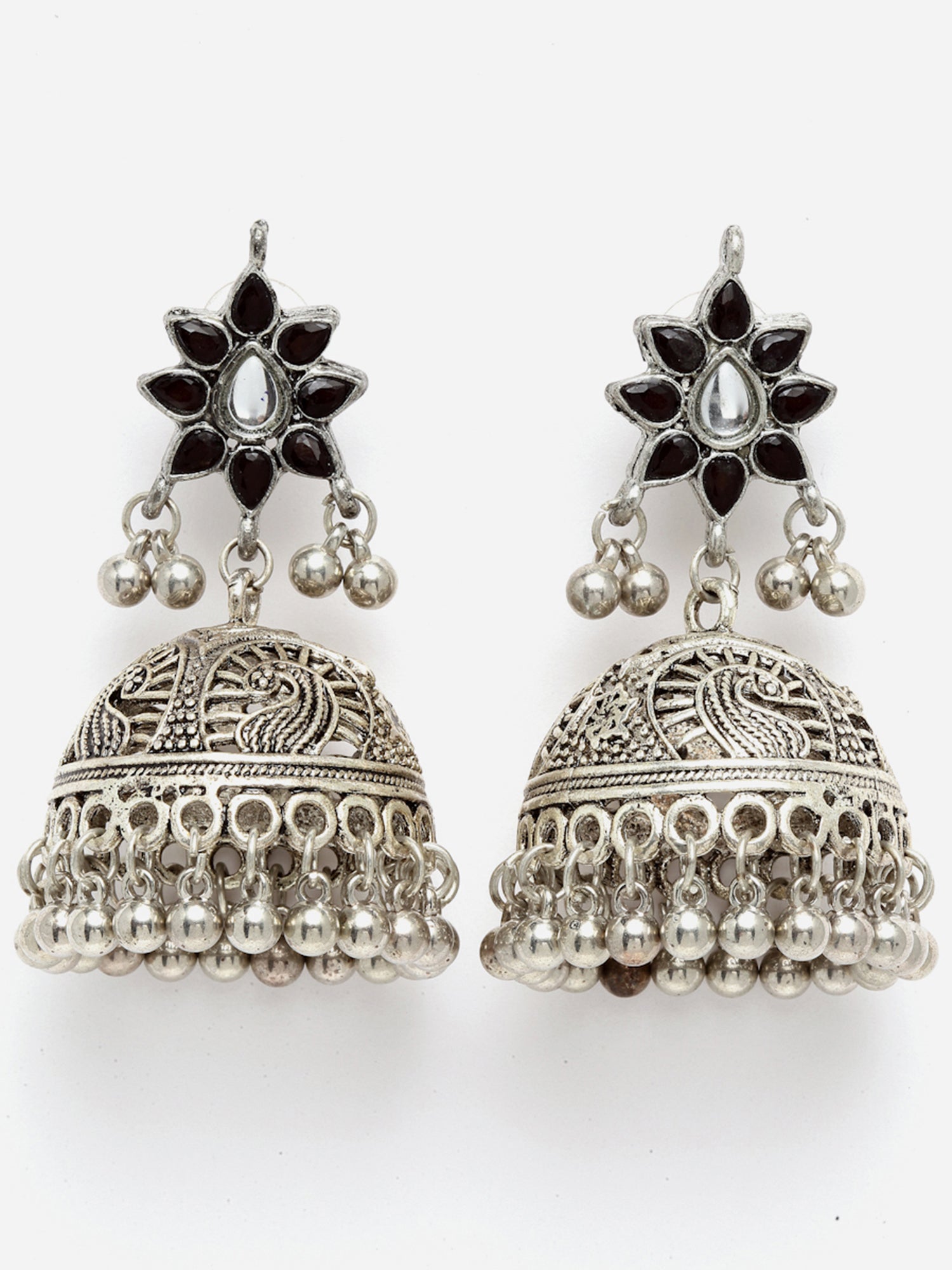 - Oxidised Silver Jhumki Earrings. It is a High-Quality Oxidised Silver Jewellery Embellished with Kundan. Perfect for Weddings, Party, Festivals, Traditional Occasions.
