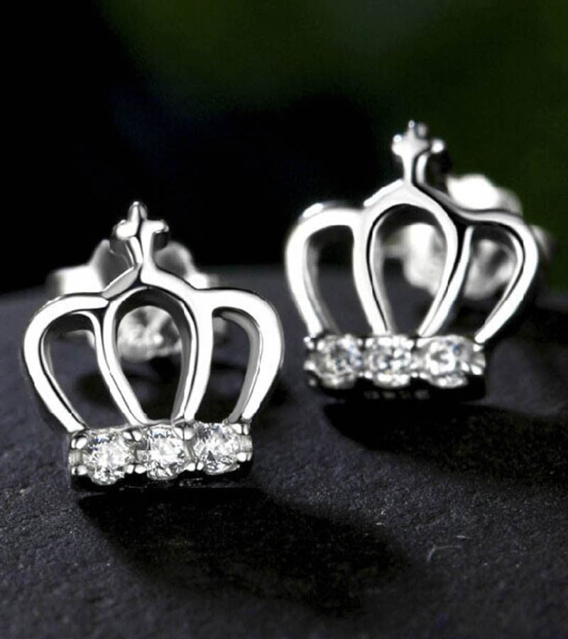 Platinum Plated Austrian Crystal Crown Workwear Earrings