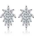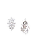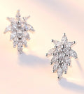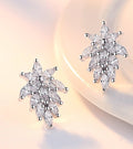 Silver Toned Leaf Shaped Cubic Zirconia Studded Stud Earrings