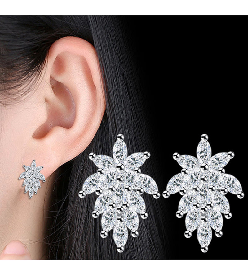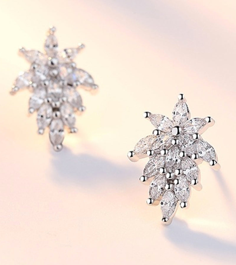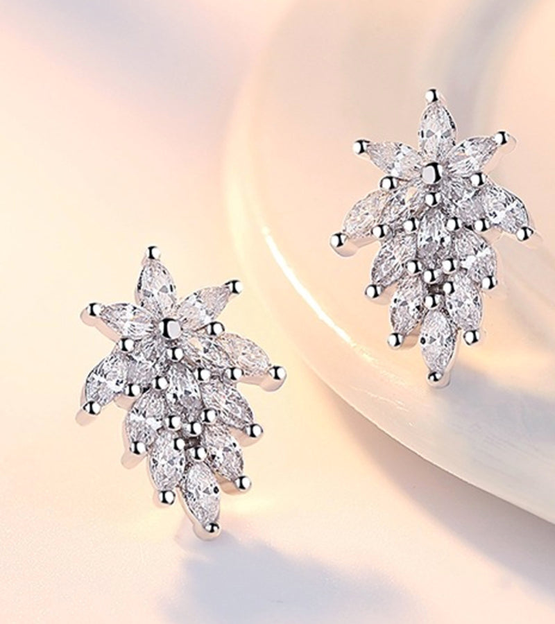 - Karatcart Silver Toned Leaf Shaped Cubic Zirconia Studded Stud Earrings for Women. It is made with High-Quality AAA Cubic zirconia. Perfect for small occasions and gifting purposes.