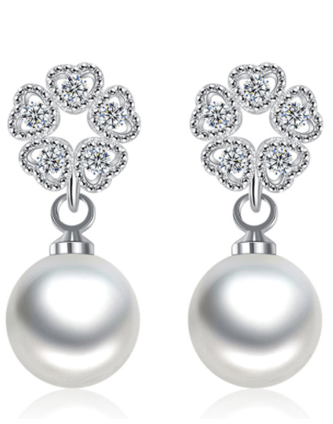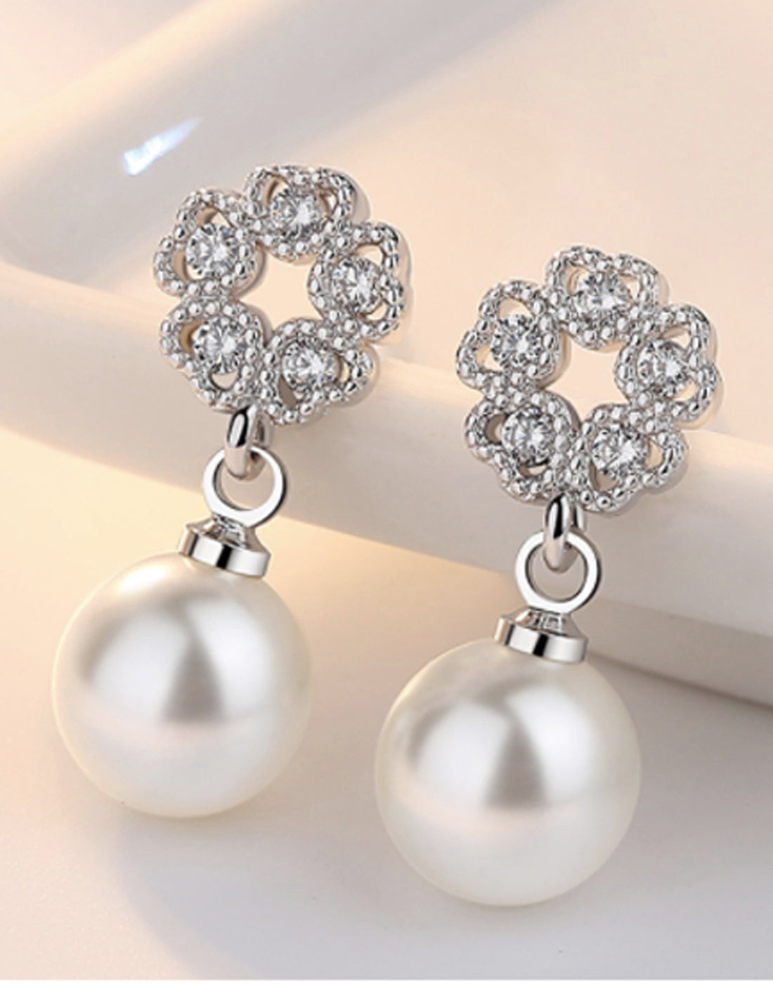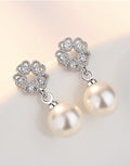 - Platinum Plated Austrian Crystal White Pearl Drop Earrings