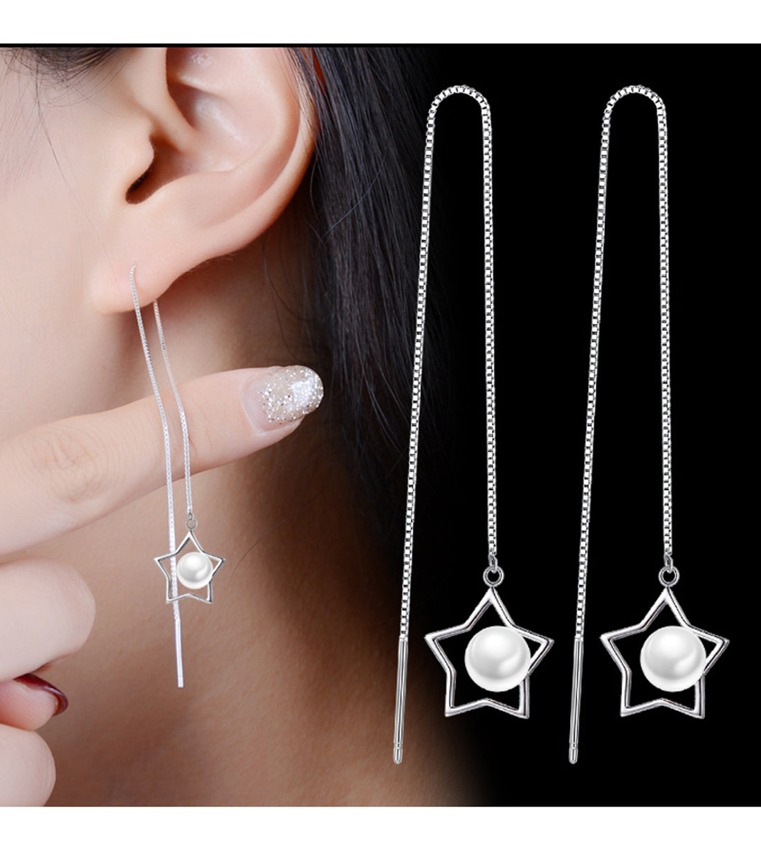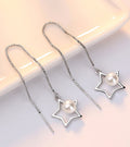 Platinum Plated White Pearl Star Shaped Drop Earrings