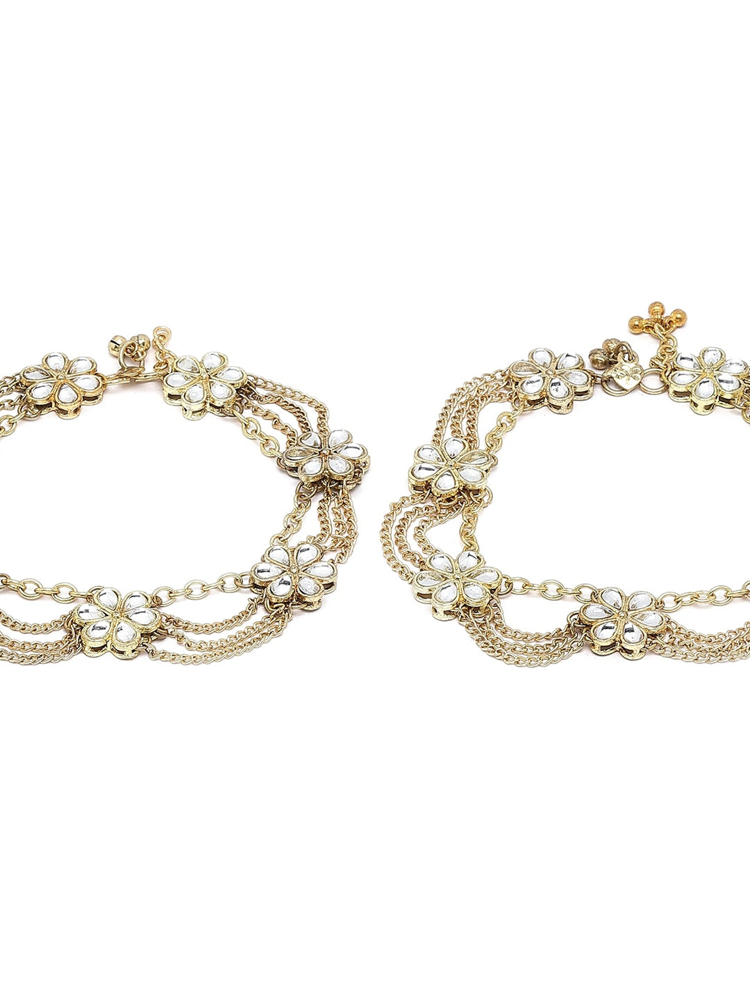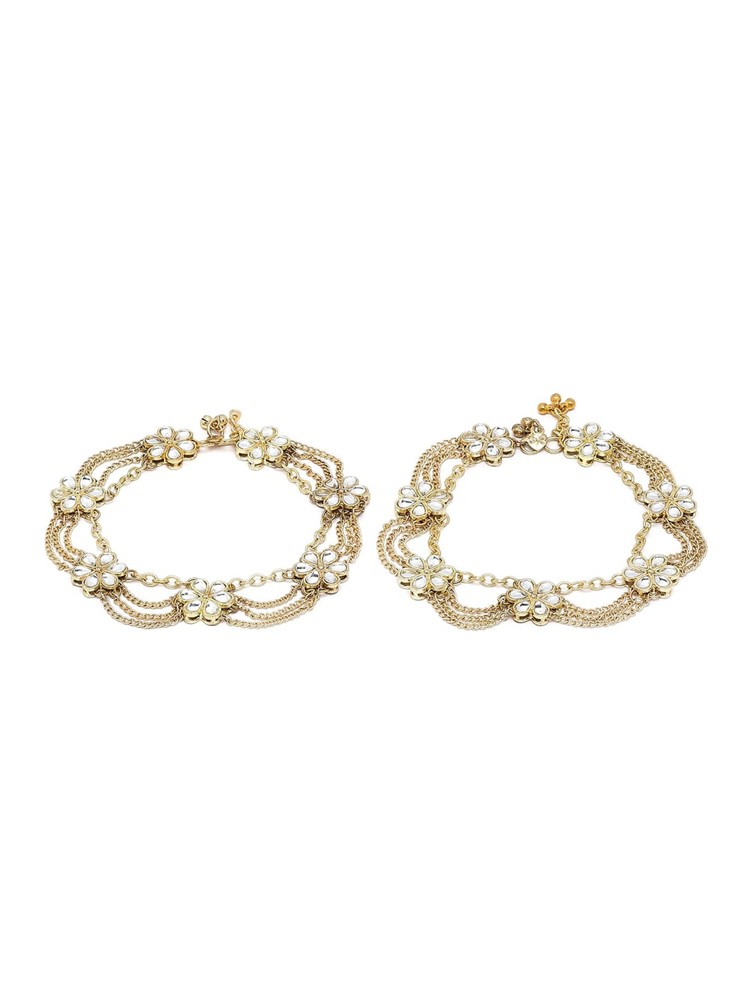 Set Of 2 Gold-Plated White Kundan-Studded Anklets
