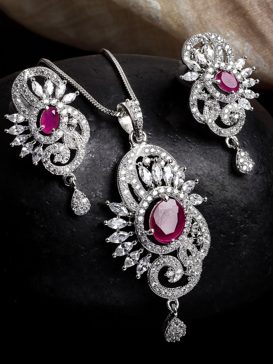 Dimensions-Necklace Length: 26.5cm, Width: 3.5cm; Earrings Length: 4.4cm, Width: 4cm