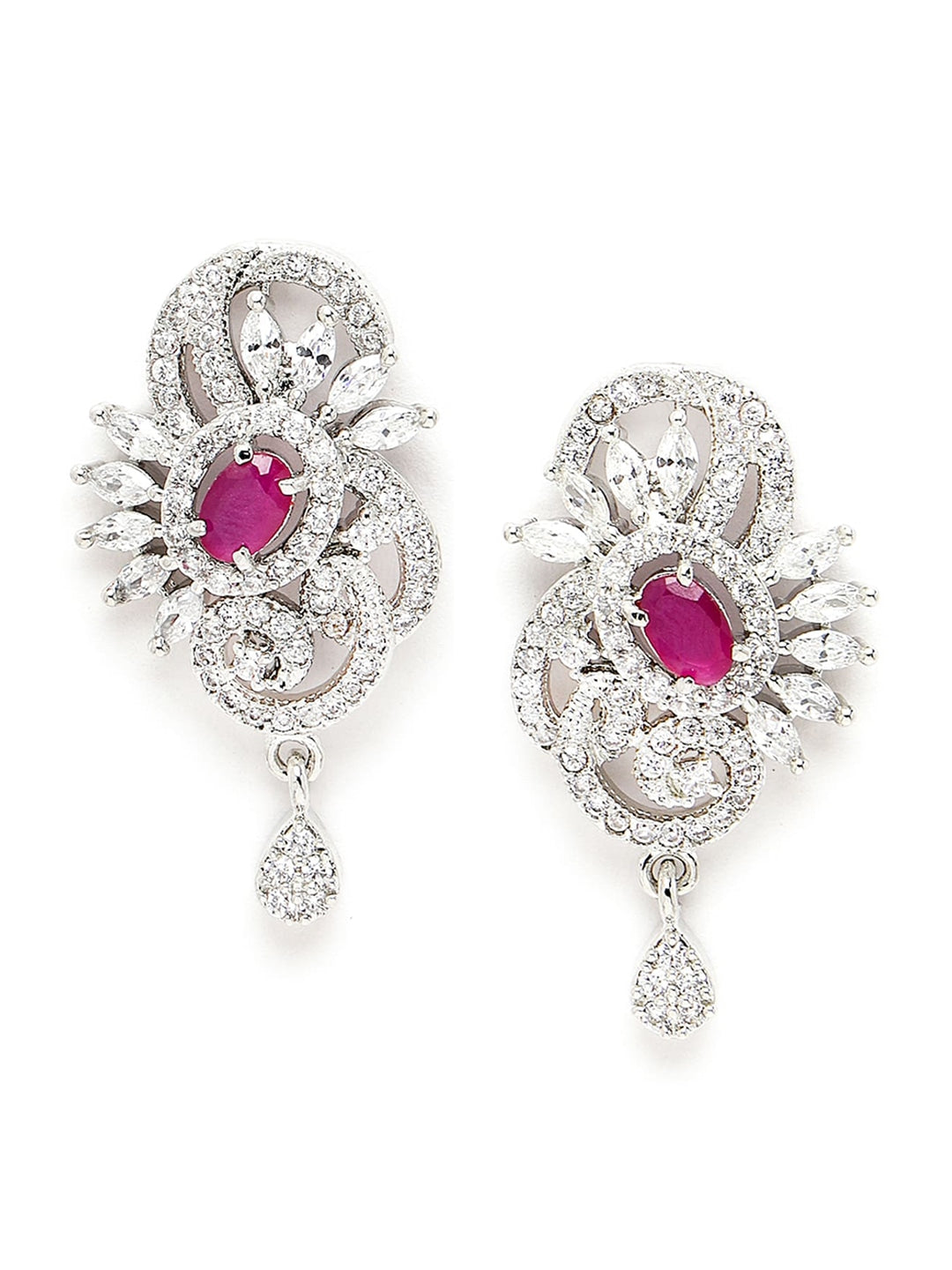 A pair of matching drop earrings, each secured with a post-and-back closure.