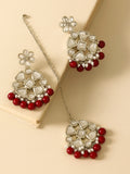 silver-plated Mangtika red stone-studded and pearl-beaded details
