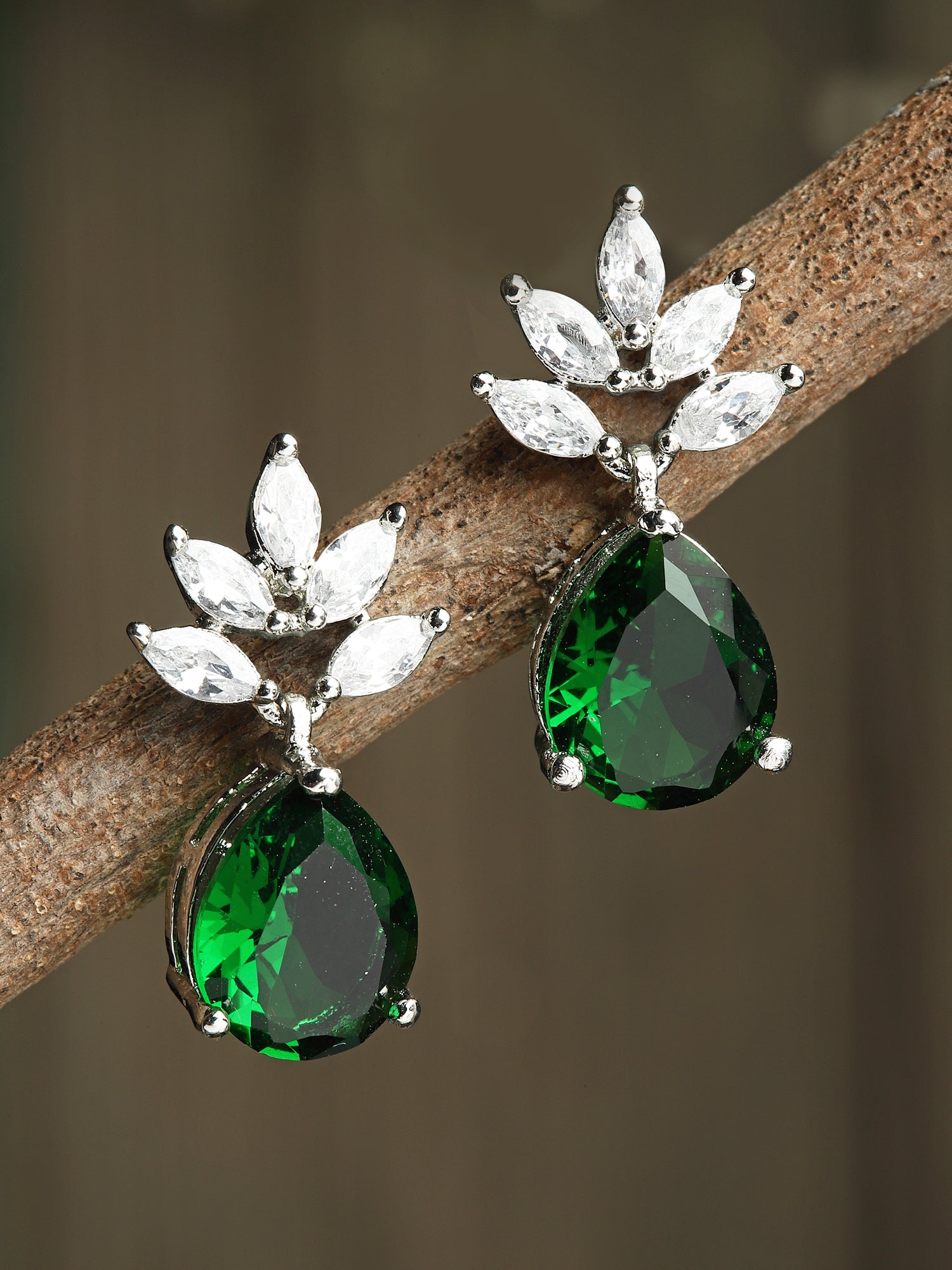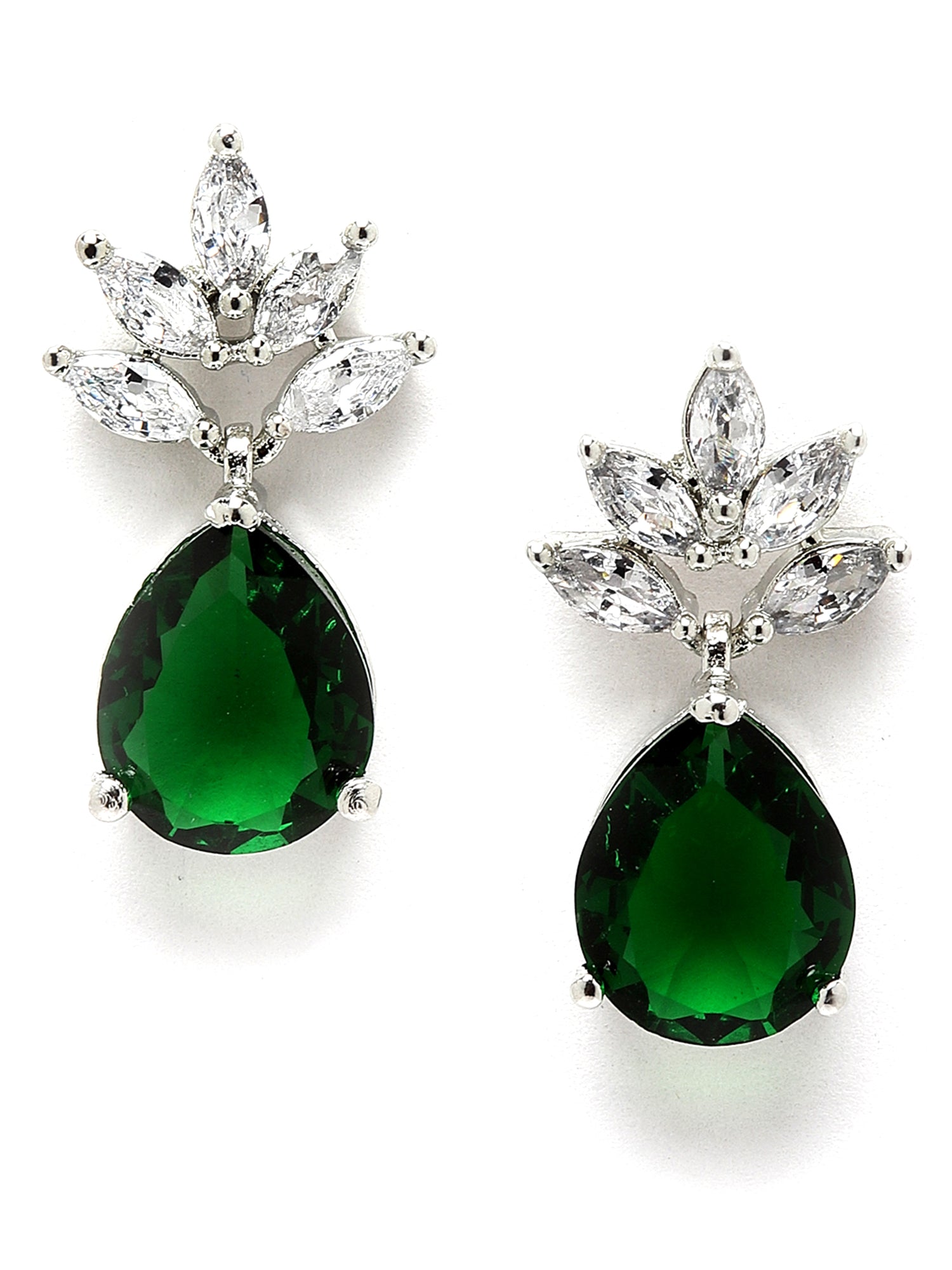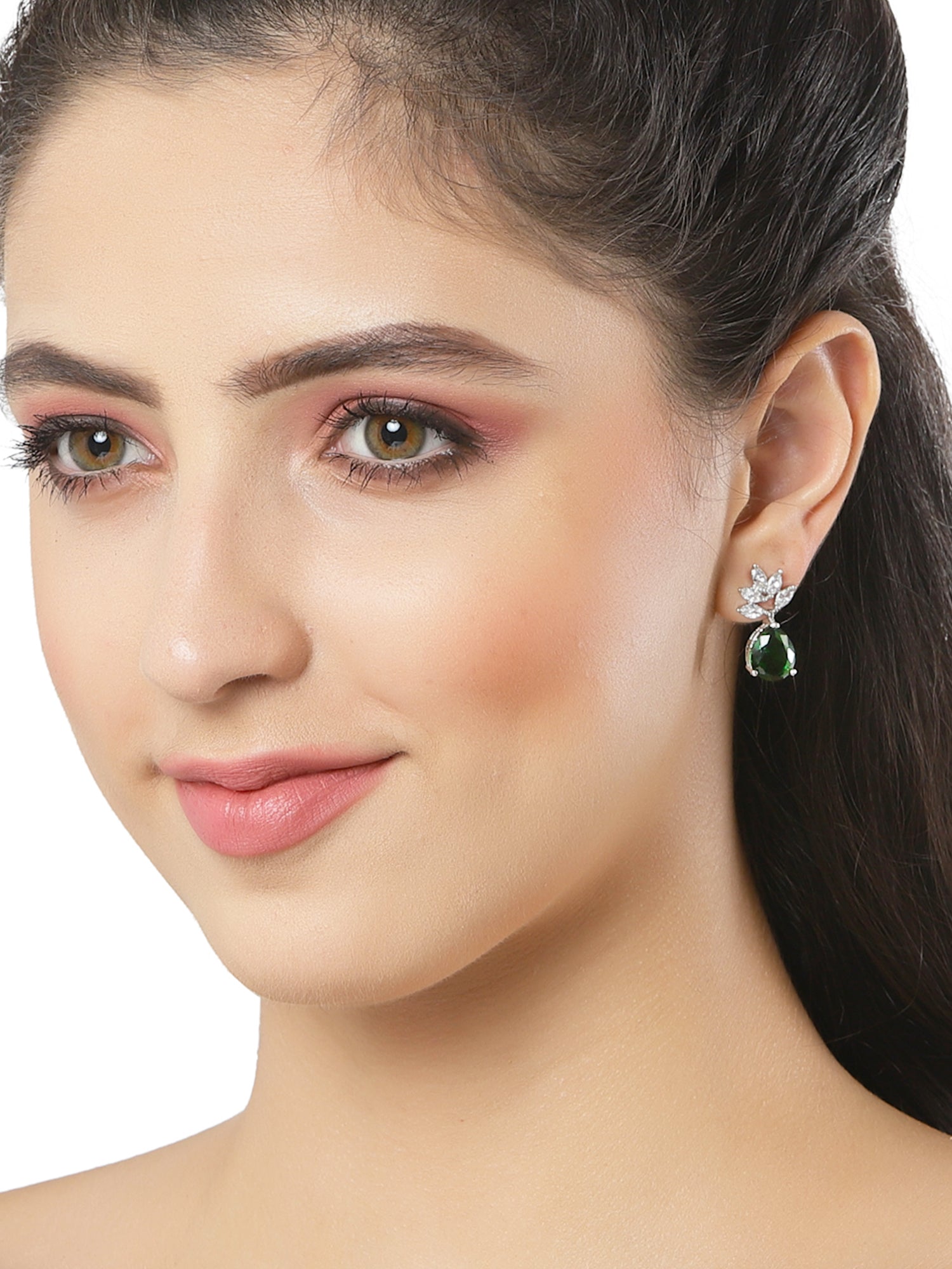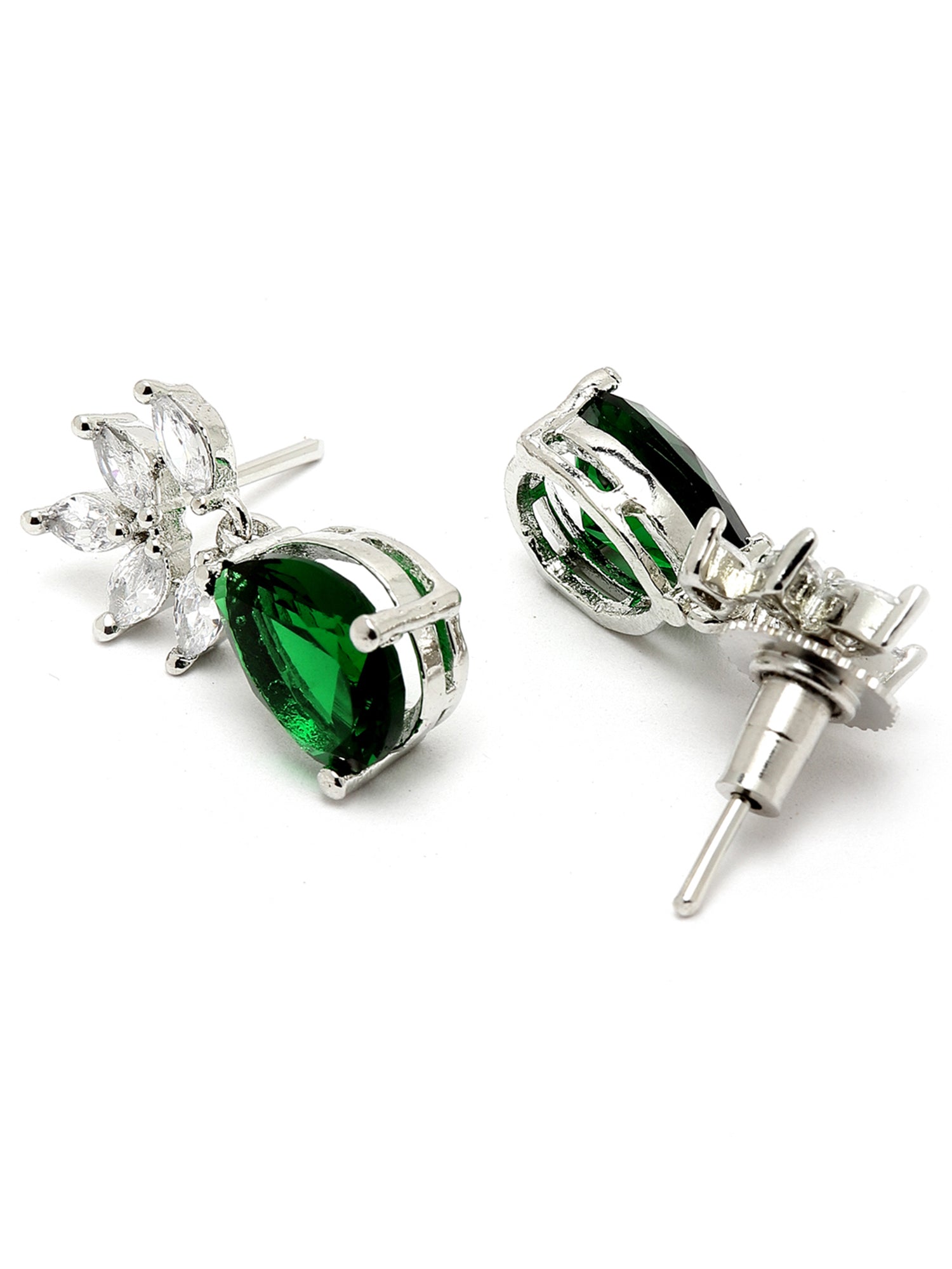 Silver Tone Green American Diamond Ear Cuffs for Women