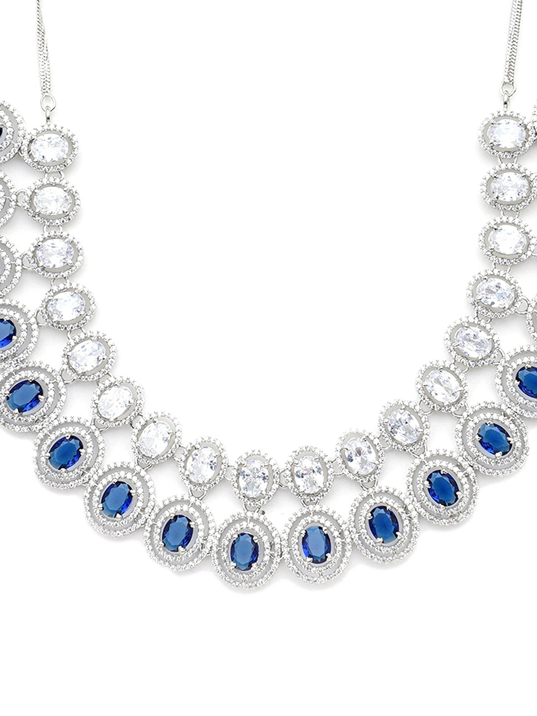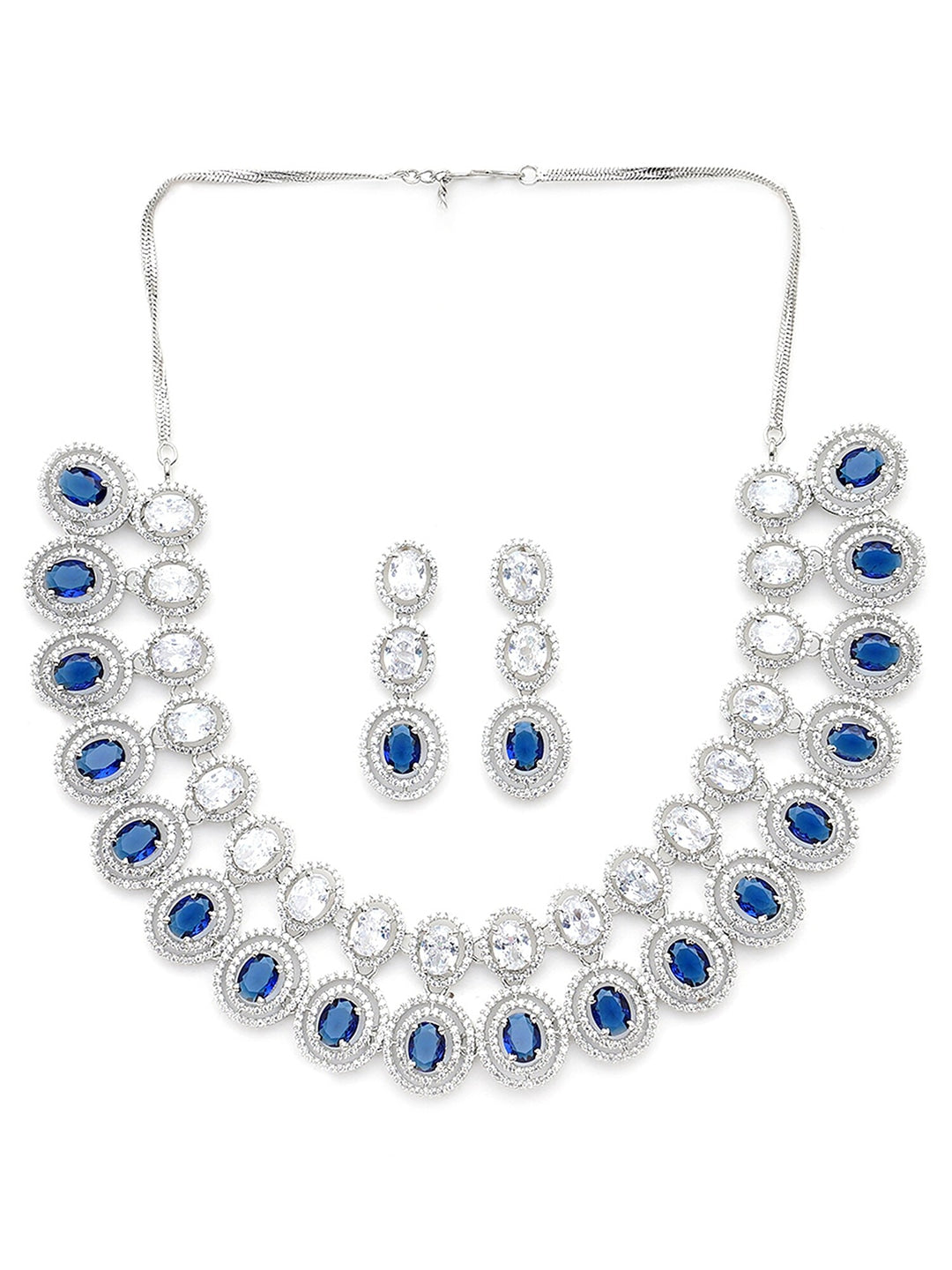 - Karatcart Blue American Diamond Studded Choker Necklace Set. It is made with High-Quality AAA Cubic zirconia. Perfect for small occasions and gifting purposes.