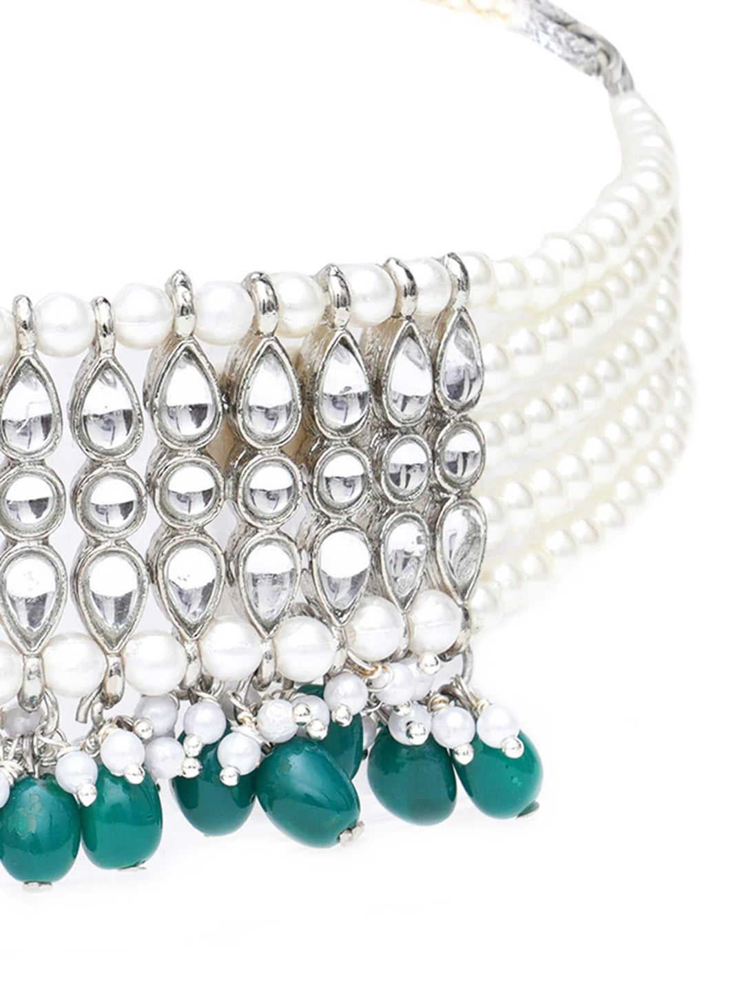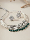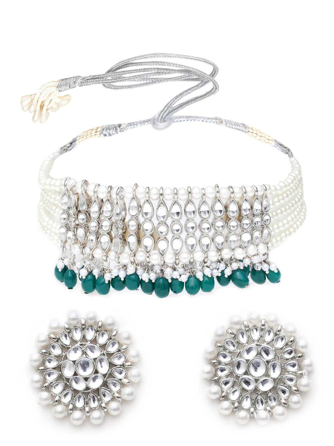 Silver-Toned Green Pearl Studded choker Jewellery Set