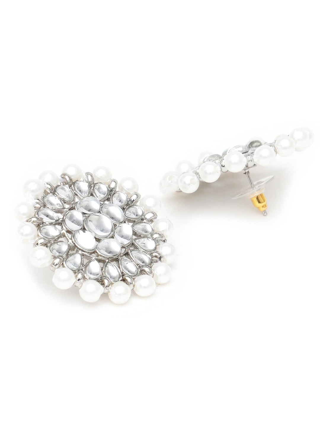 Silver-plated chocker necklace has white stone-studded and pearl-beaded details