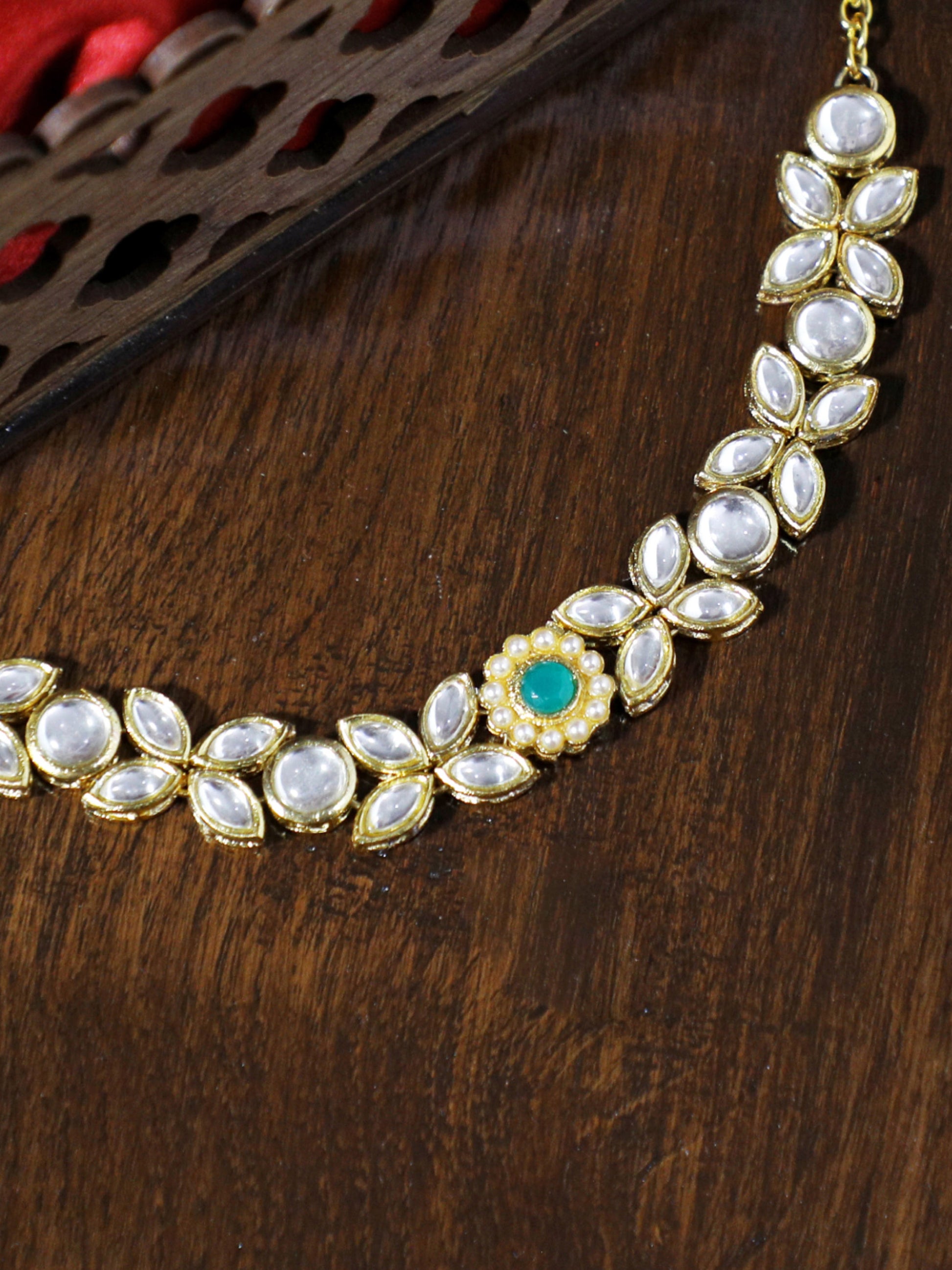 Traditional Gold Plated Green Bead Kundan Bajubandh