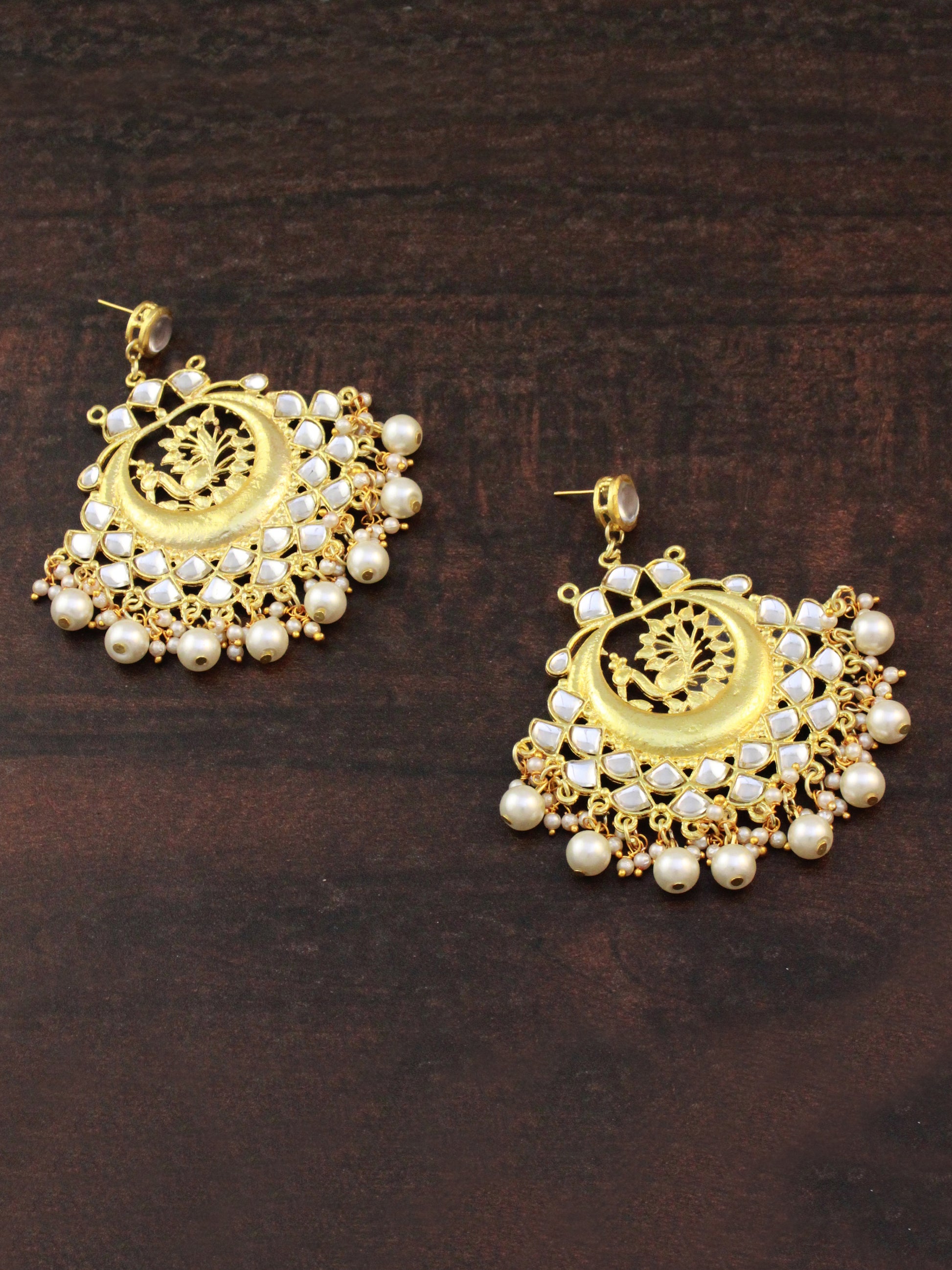- Traditional Gold Plated Peacock Design Kundan Chandbali Earrings for Women. It's Five Layer Micro Gold Plated and Embellished with Elegant Kundan for High Durability. Intricate high polish creates glamorous reflections and adds a luxurious look. Perfect for Weddings, Festivals, Traditional Occasions. Best when paired with any Indian outfit.