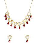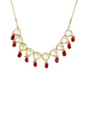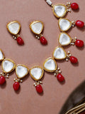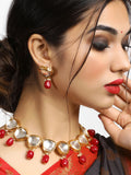 Traditional Gold Plated Red Beads Polki Kundan Necklace Set