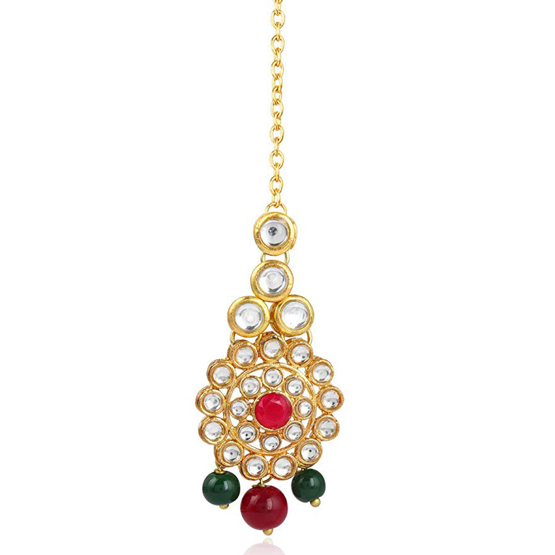 - Glam up the look with this trendy Maangtikka. It's embellished with Kundan and Pearl beads. Perfect for Weddings, Festivals, Traditional Occasions. Best when paired with any Indian outfit.