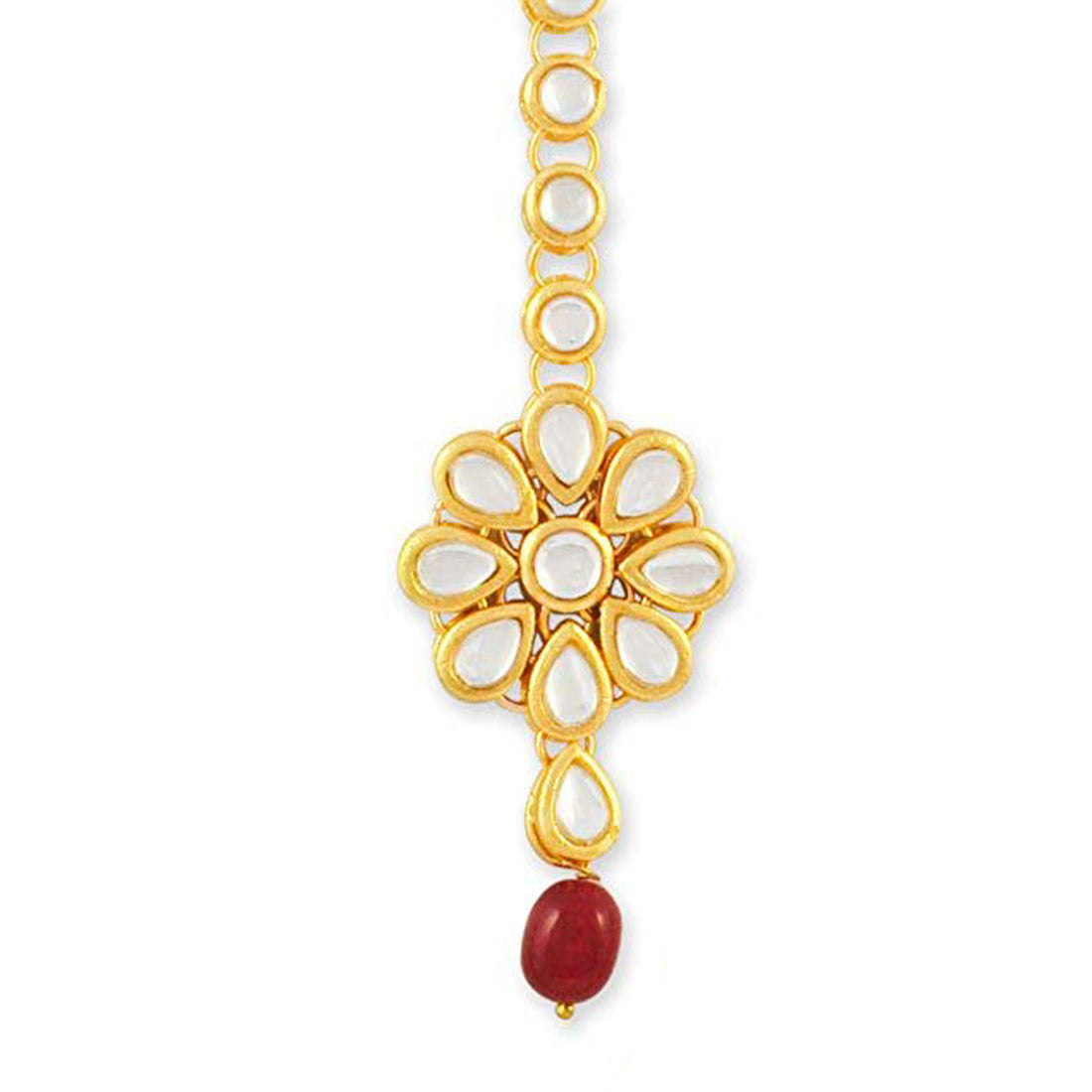 Traditional Gold Plated Red Beads Kundan Maangtikka For Women