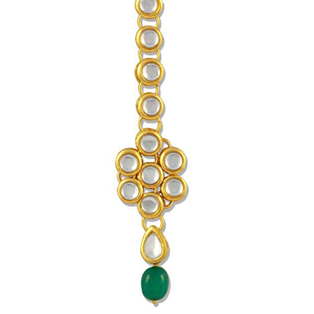 Traditional Gold Plated Green Beads Kundan Maangtikka For Women