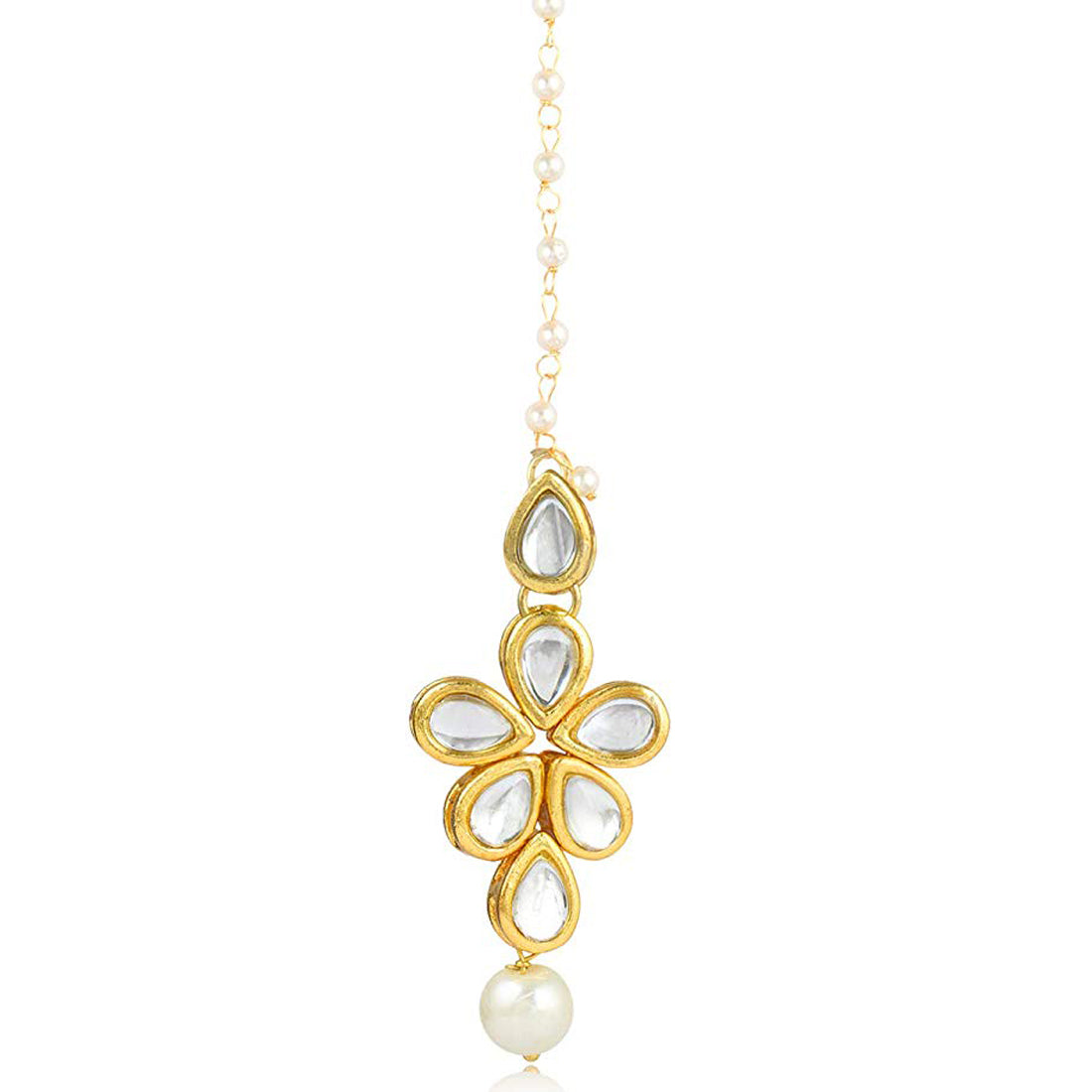 Traditional Gold Plated Pearl Beads Kundan Maangtikka For Women