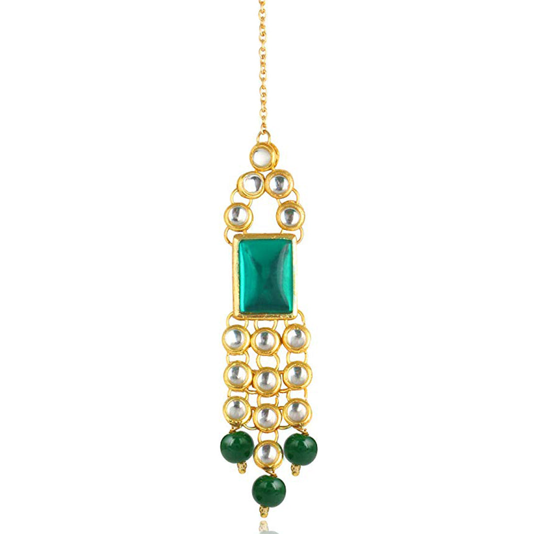 Traditional Gold Plated Green Stone Kundan Maangtikka For Women