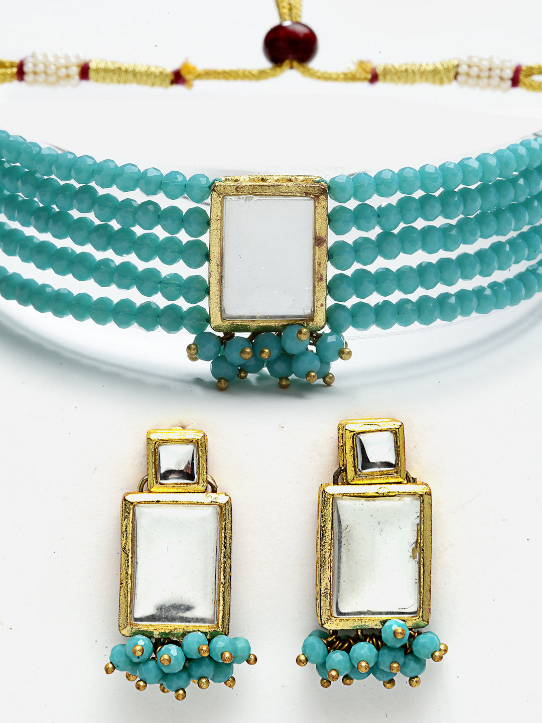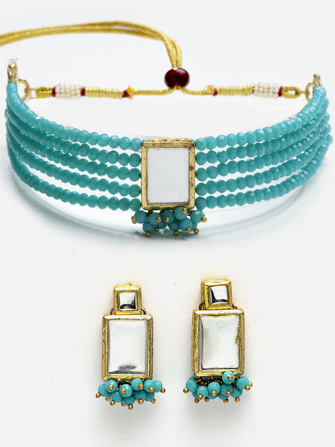 Traditional Light Blue Crystal Kundan Choker Necklace Set