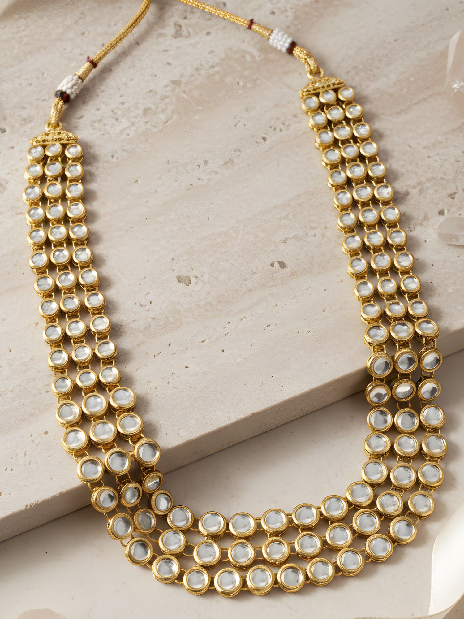 Traditional Gold Plated Kundan Maharaja Moti Mala for Men