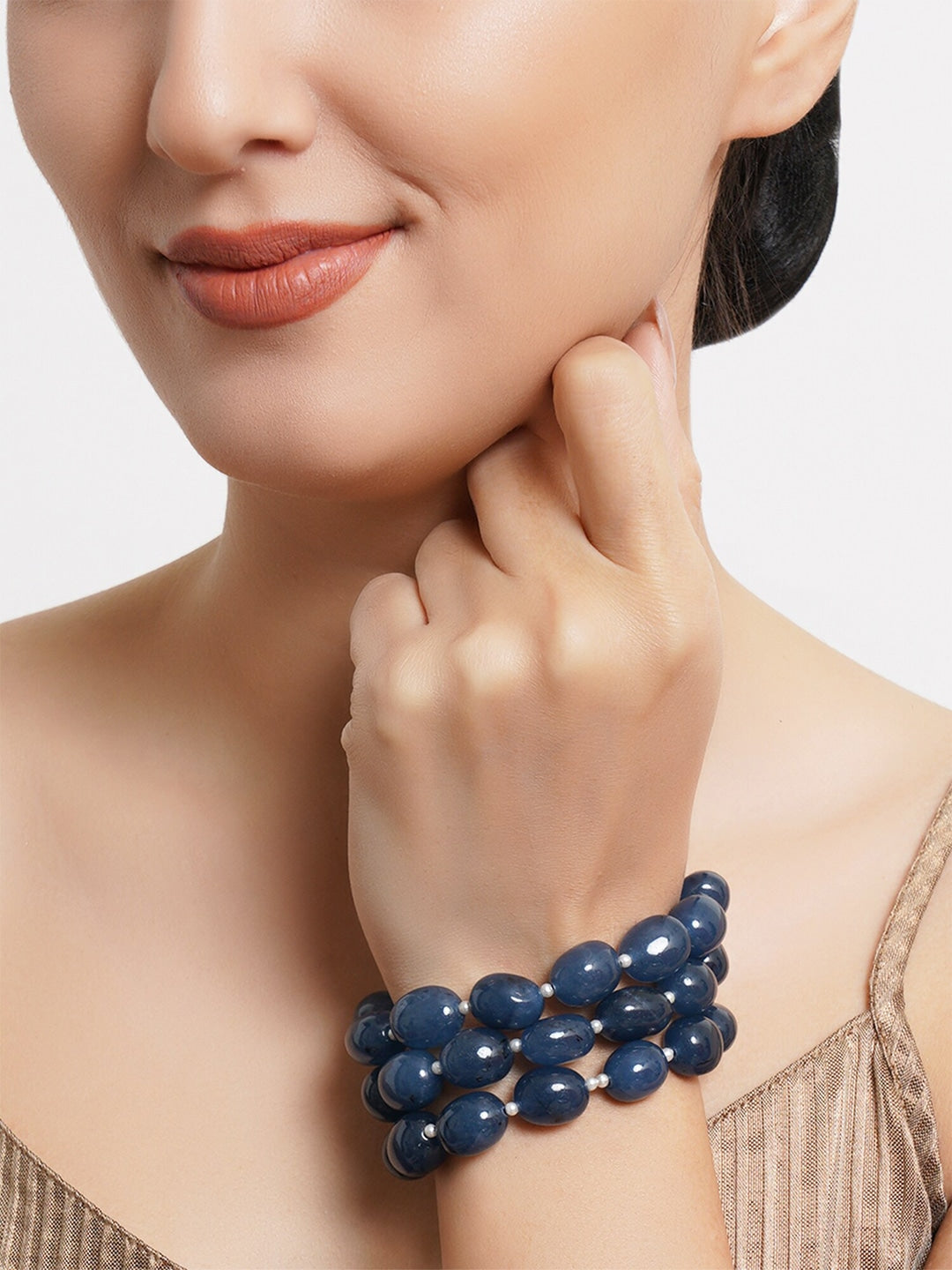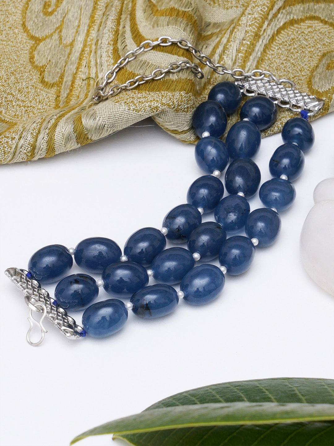 Women Blue Kundan Silver-Plated Multistrand Bracelet