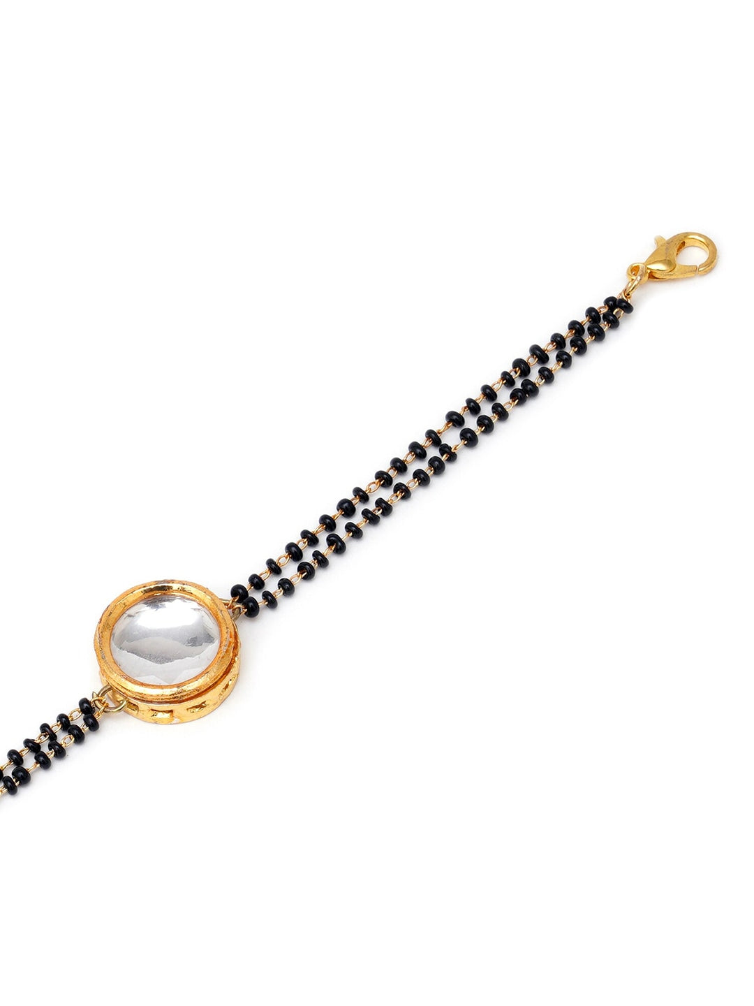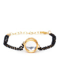 Karatcart Gold Plated Round Polki Kundan Handcrafted Charm Mangalsutra Bracelet for Women
