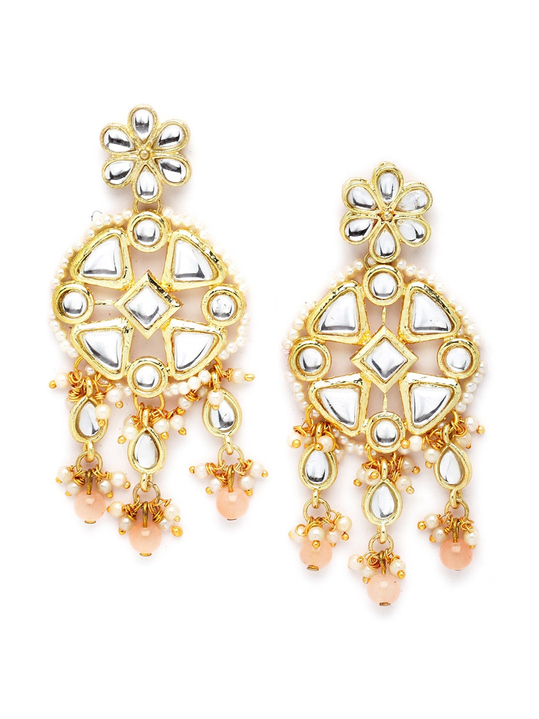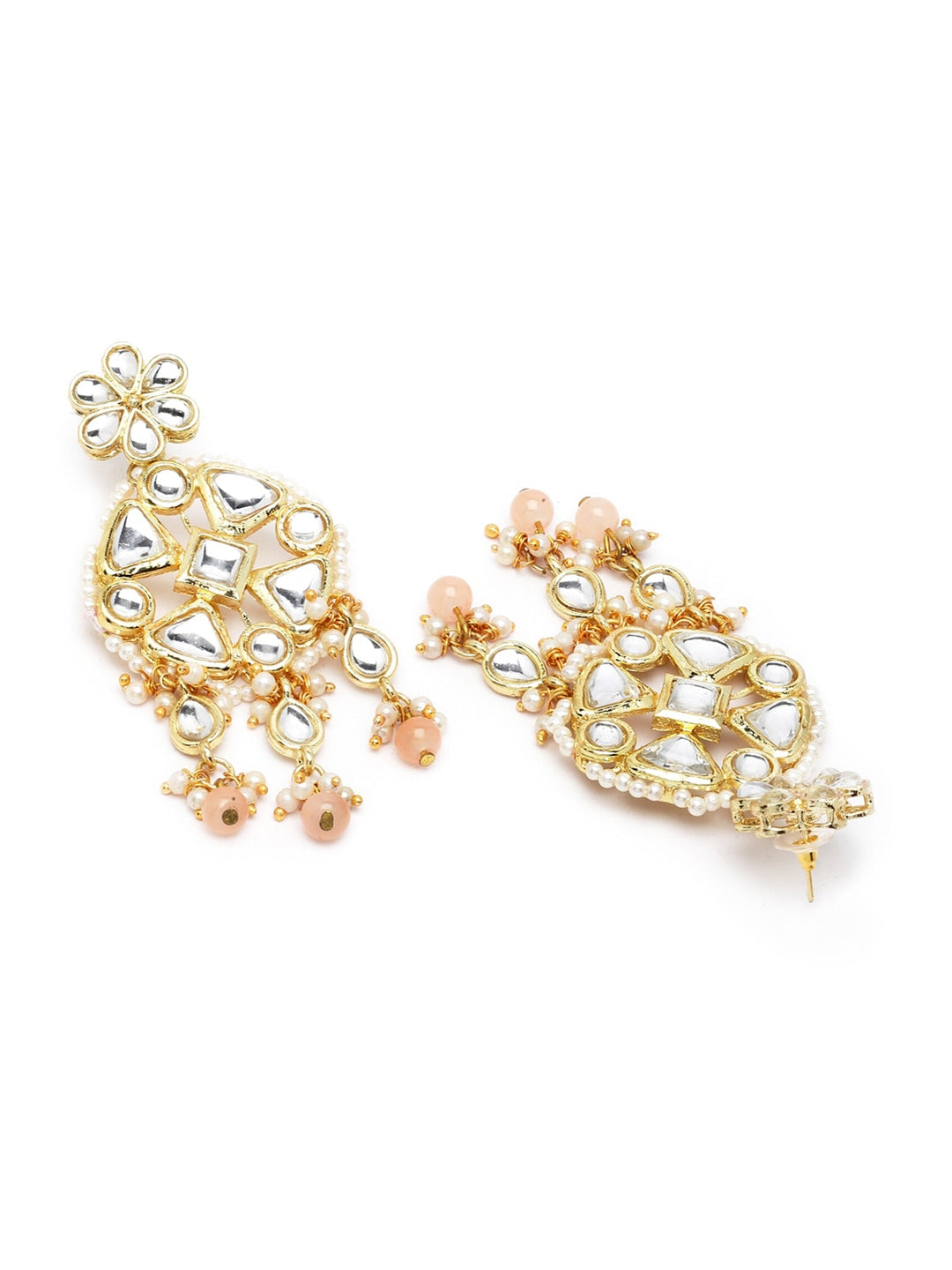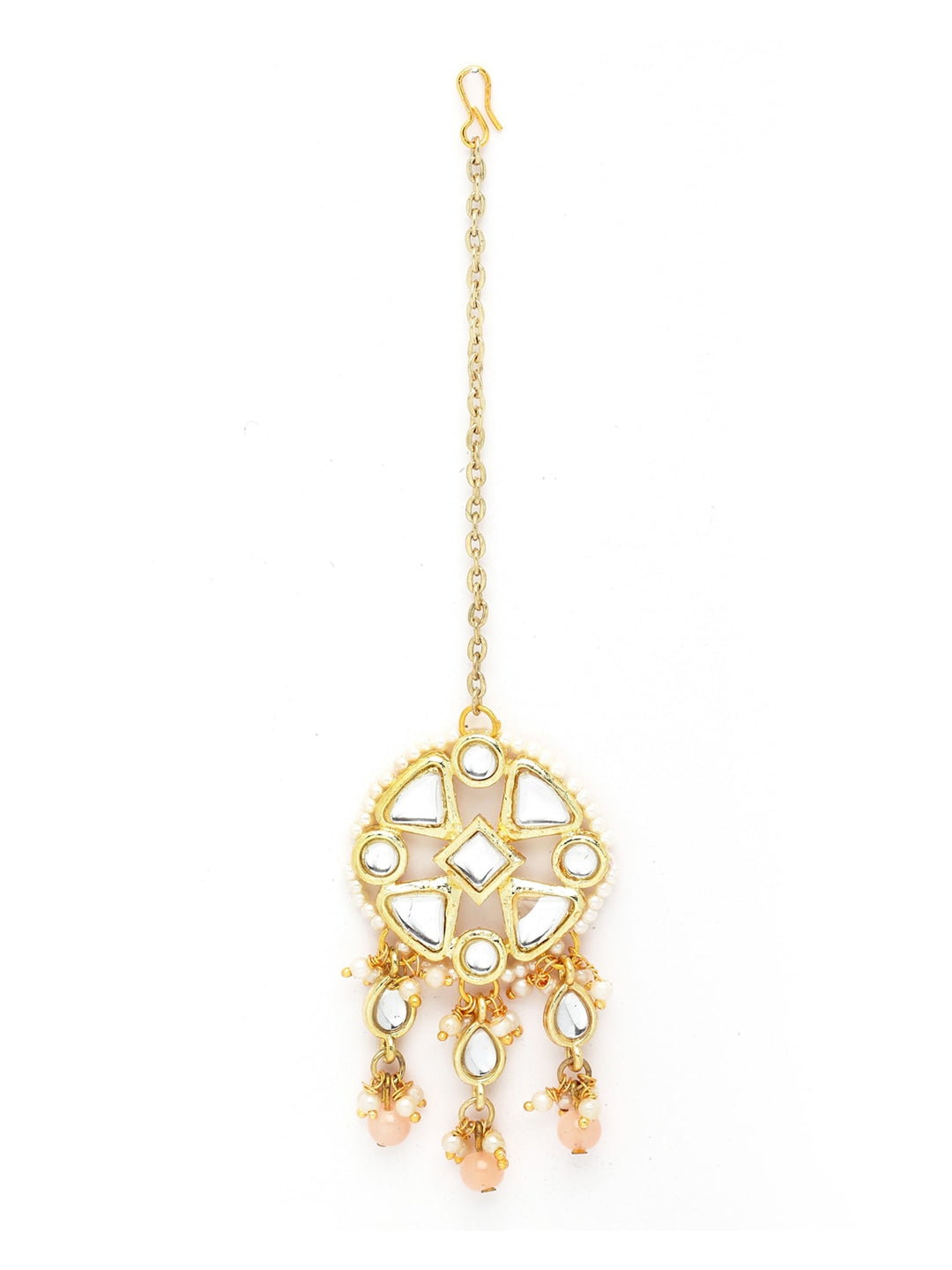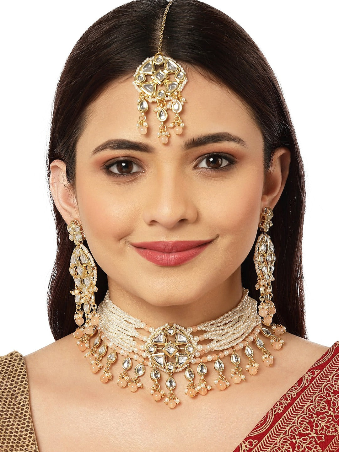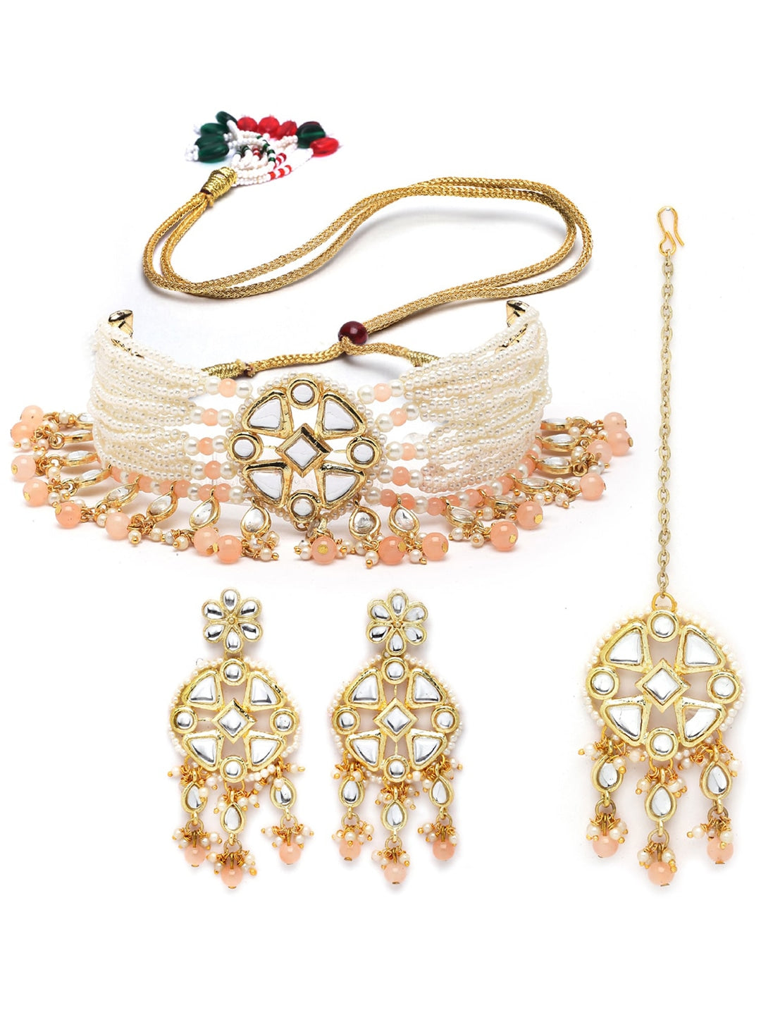 Women Gold Plated Peach Beads Studded Kundan Choker Necklace Set