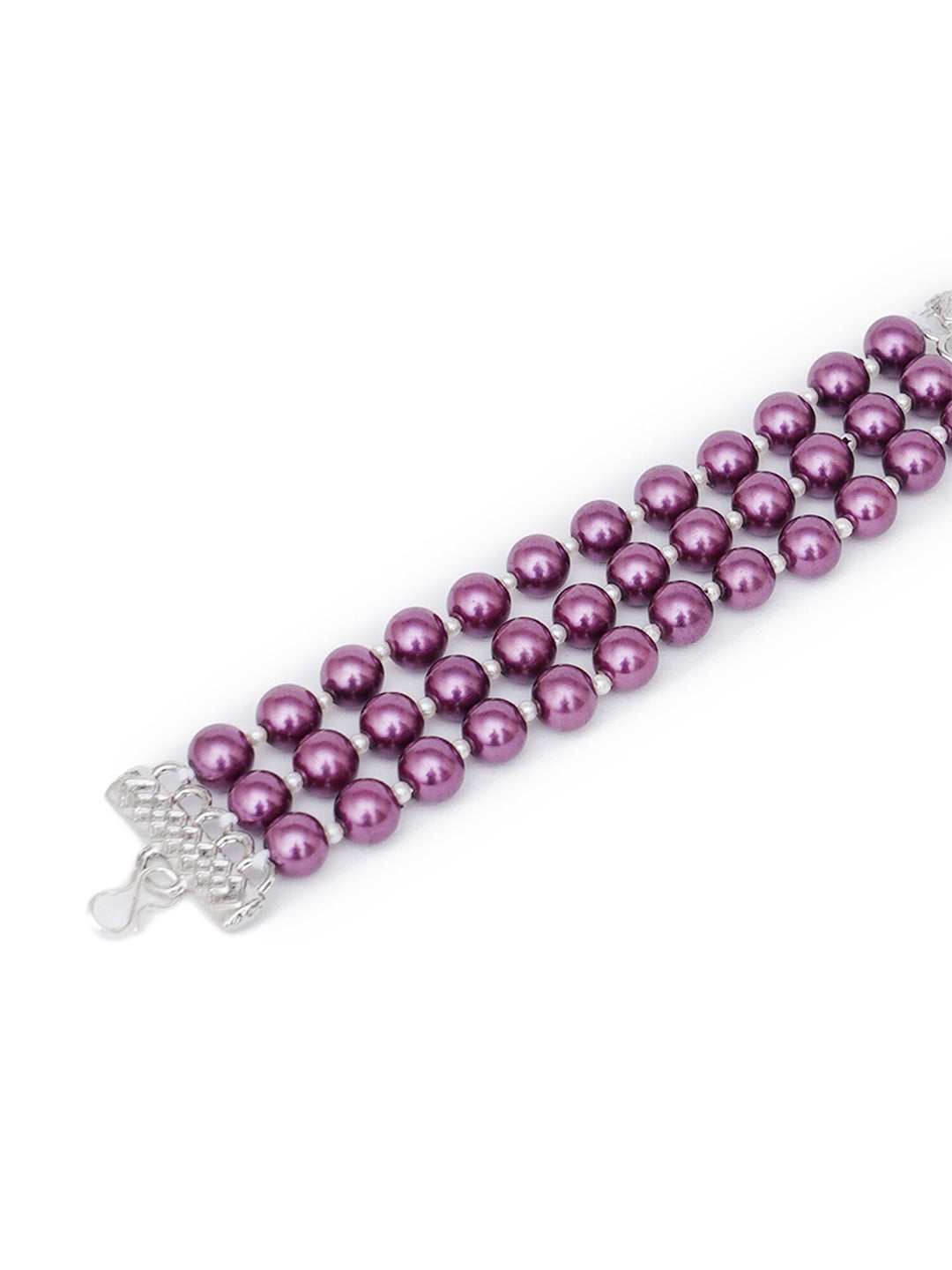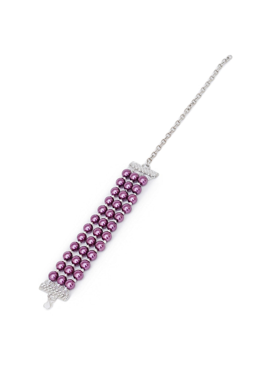 Women Purple & Silver-Toned Beaded Kundan Multistrand Bracelet