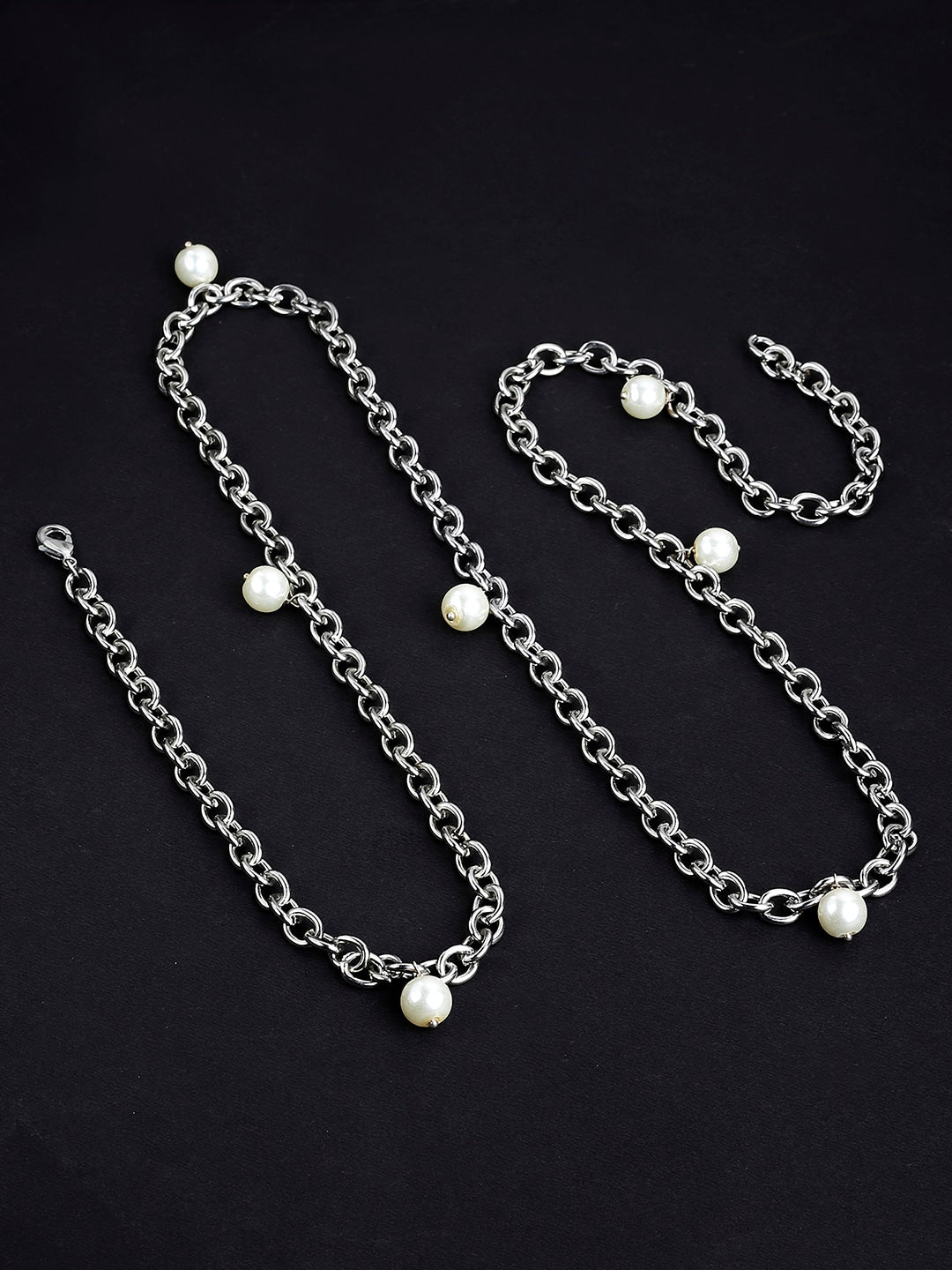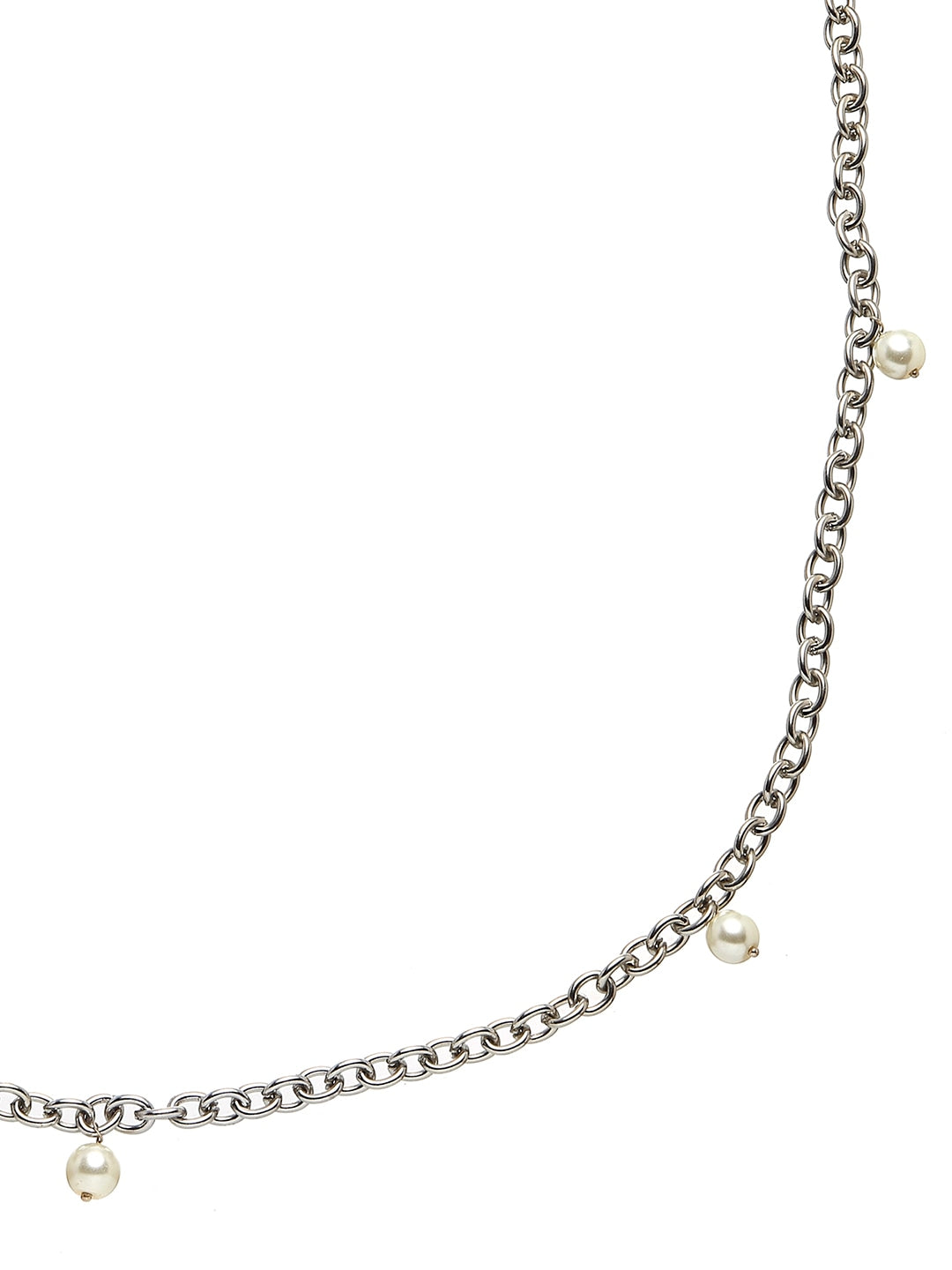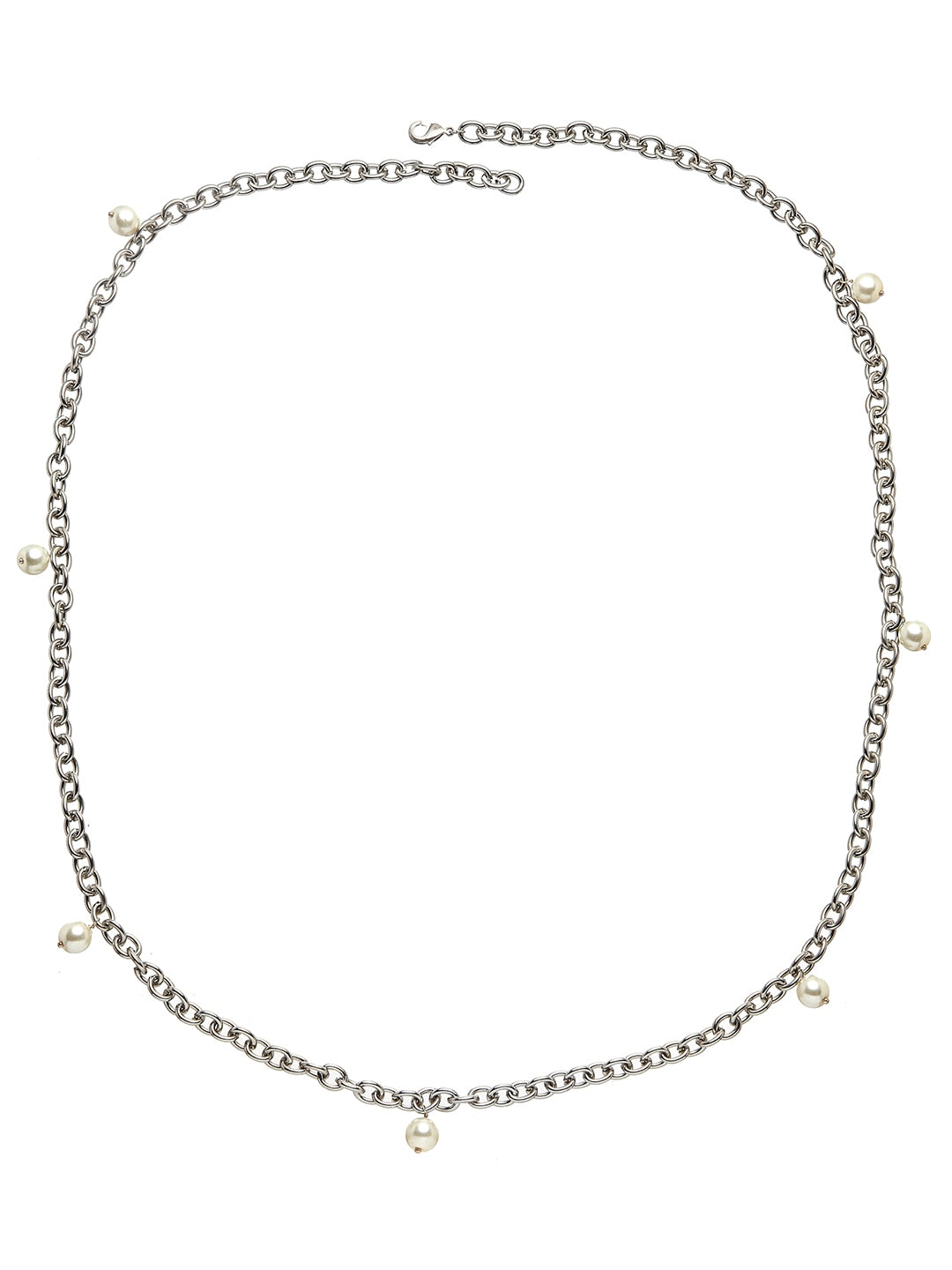 silver-toned pearl studded waist chain