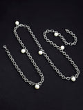 Women Silver Toned White Pearl Studded kamarbandh